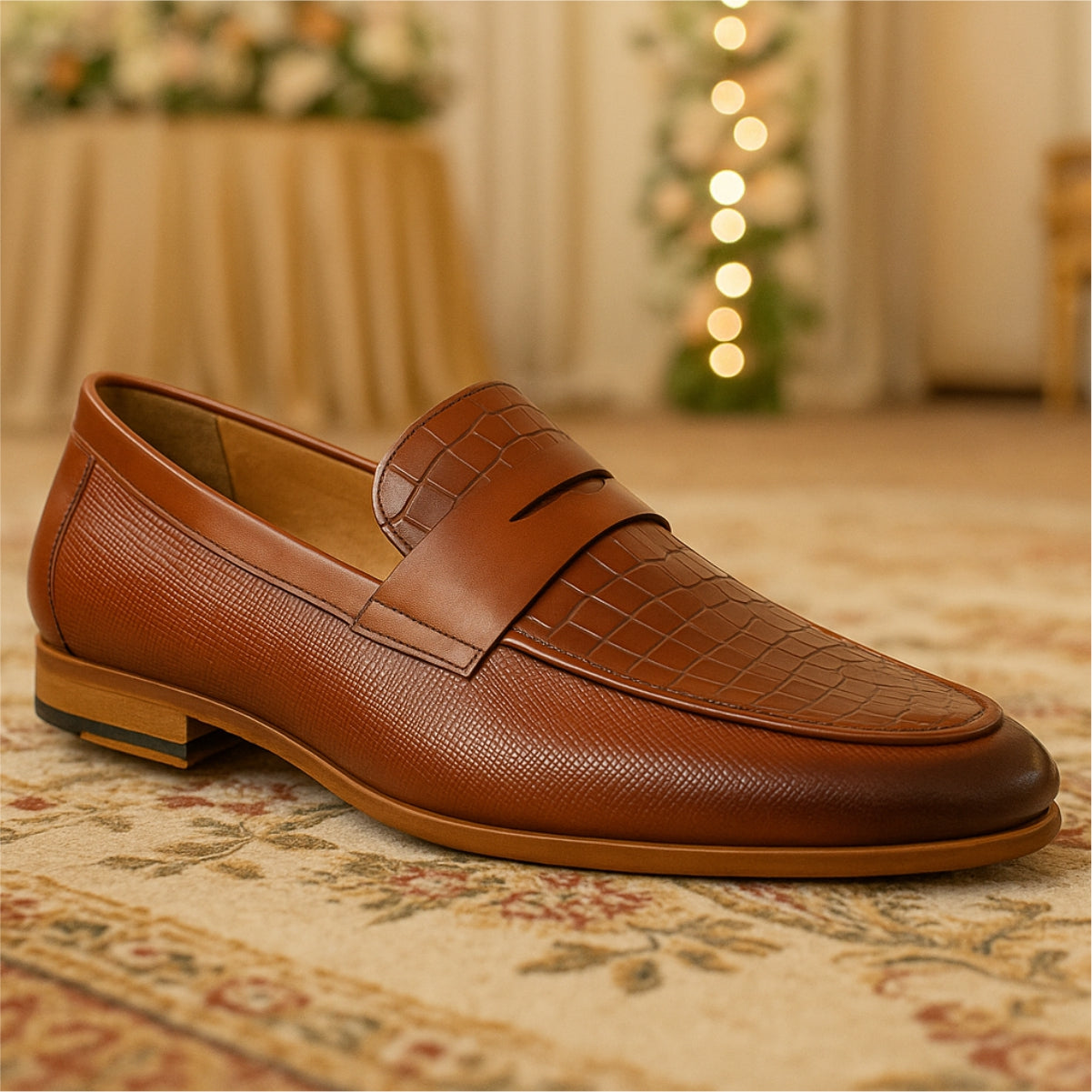 Tan Leather Formal For Men Lace-Up Casual Leather Shoes