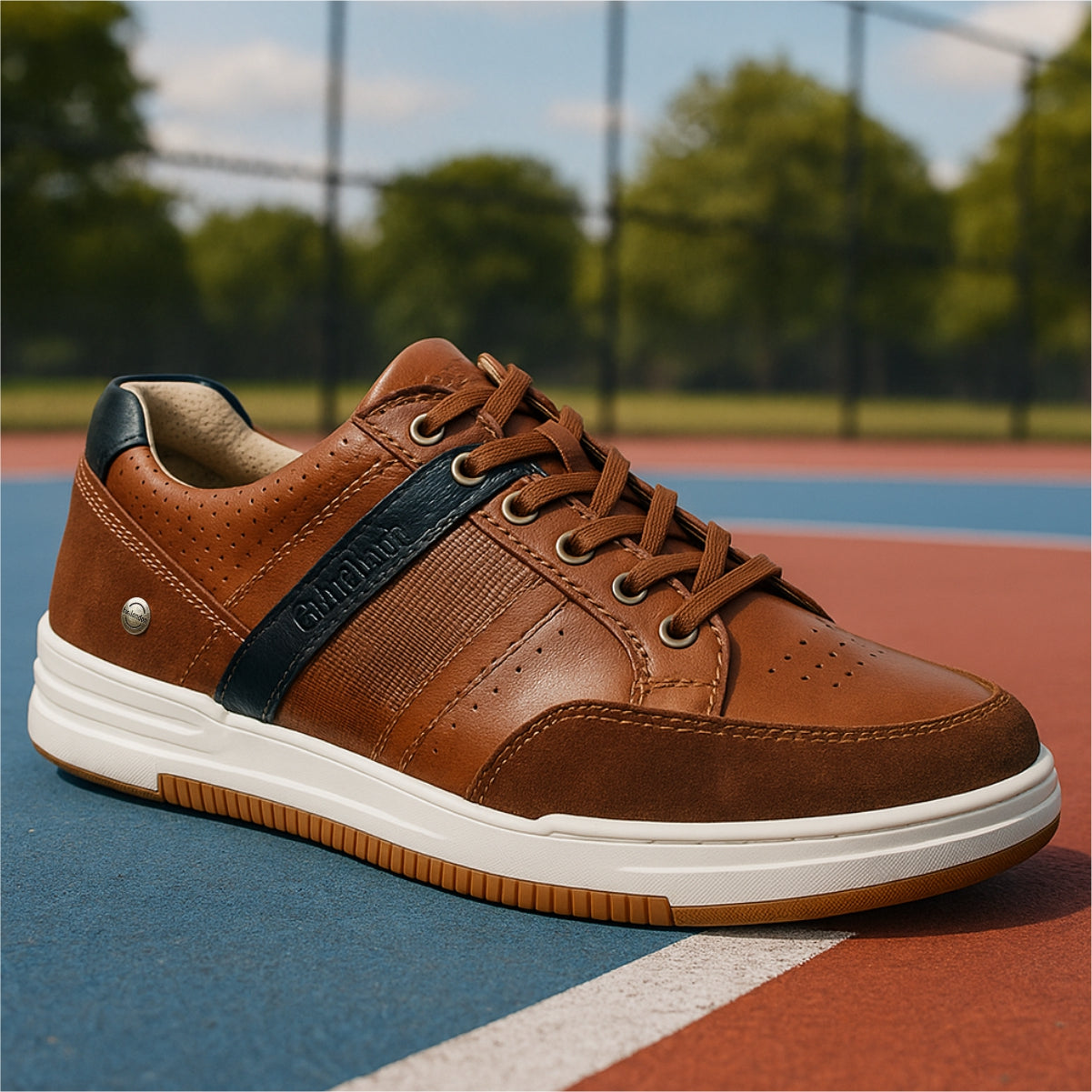 Tan Leather Men Perforations Round Toe Lightweight Sneakers