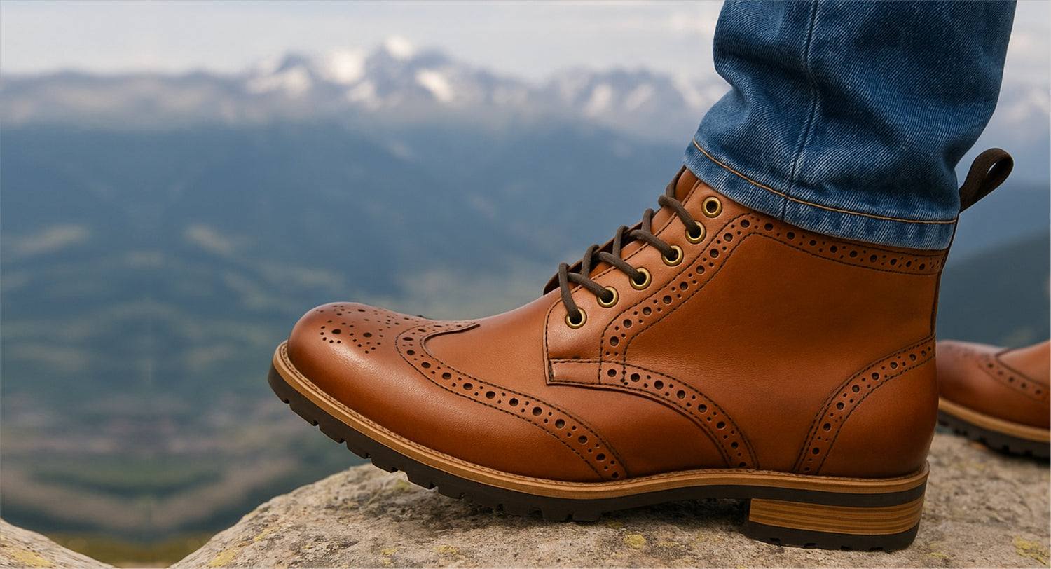 Brown Genuine Leather Men's brogue lace-up boots for Casual Wear