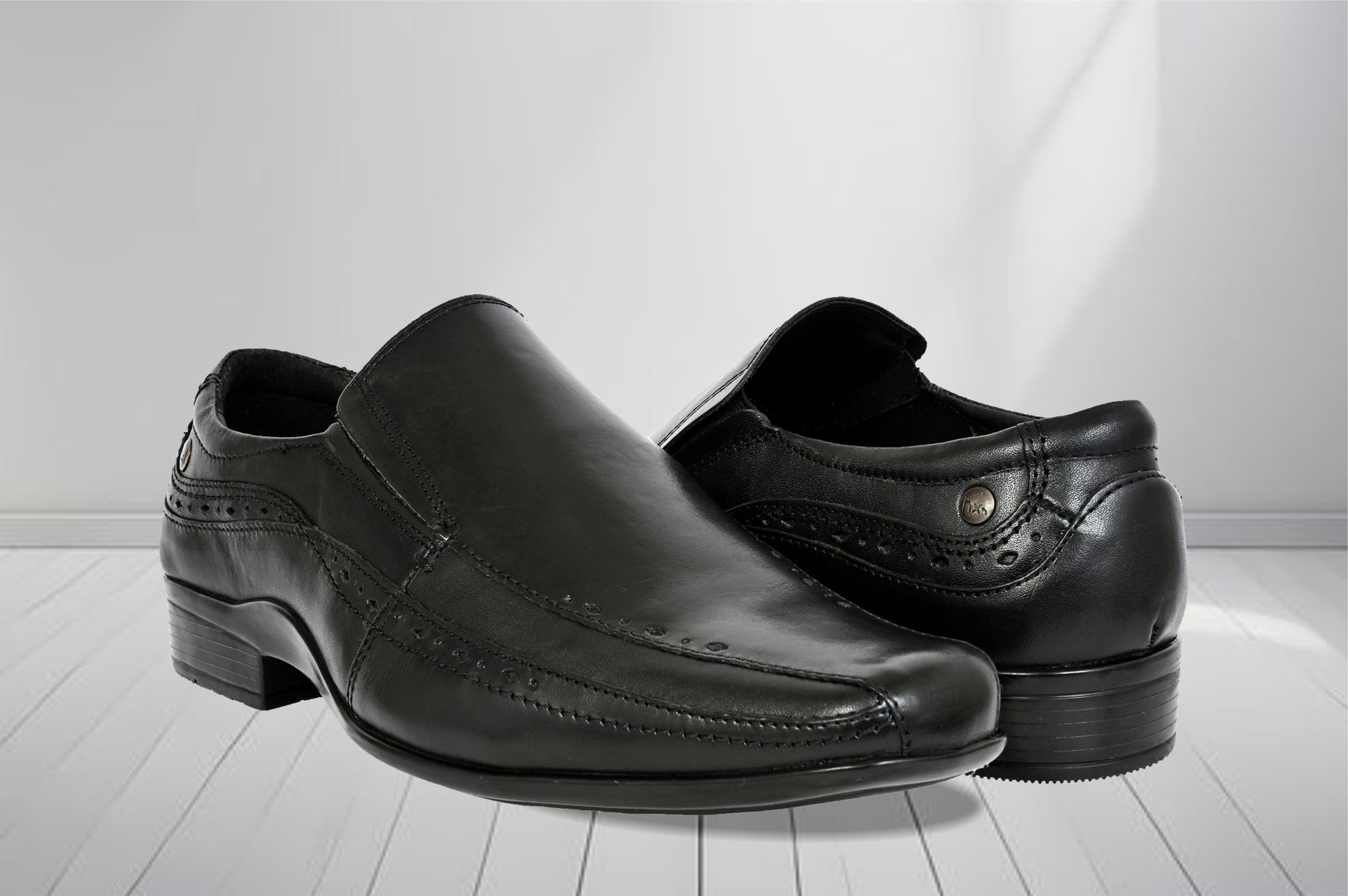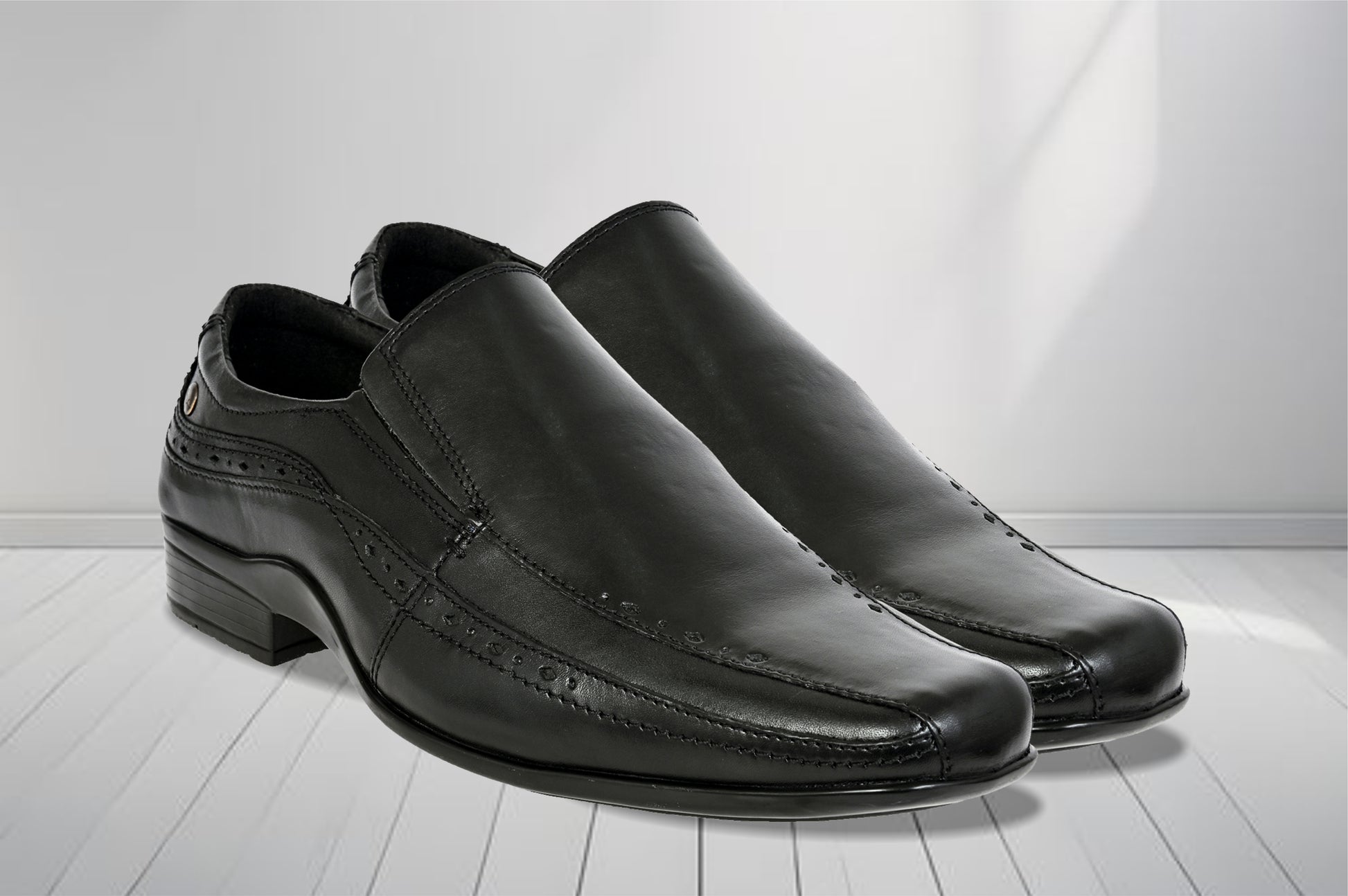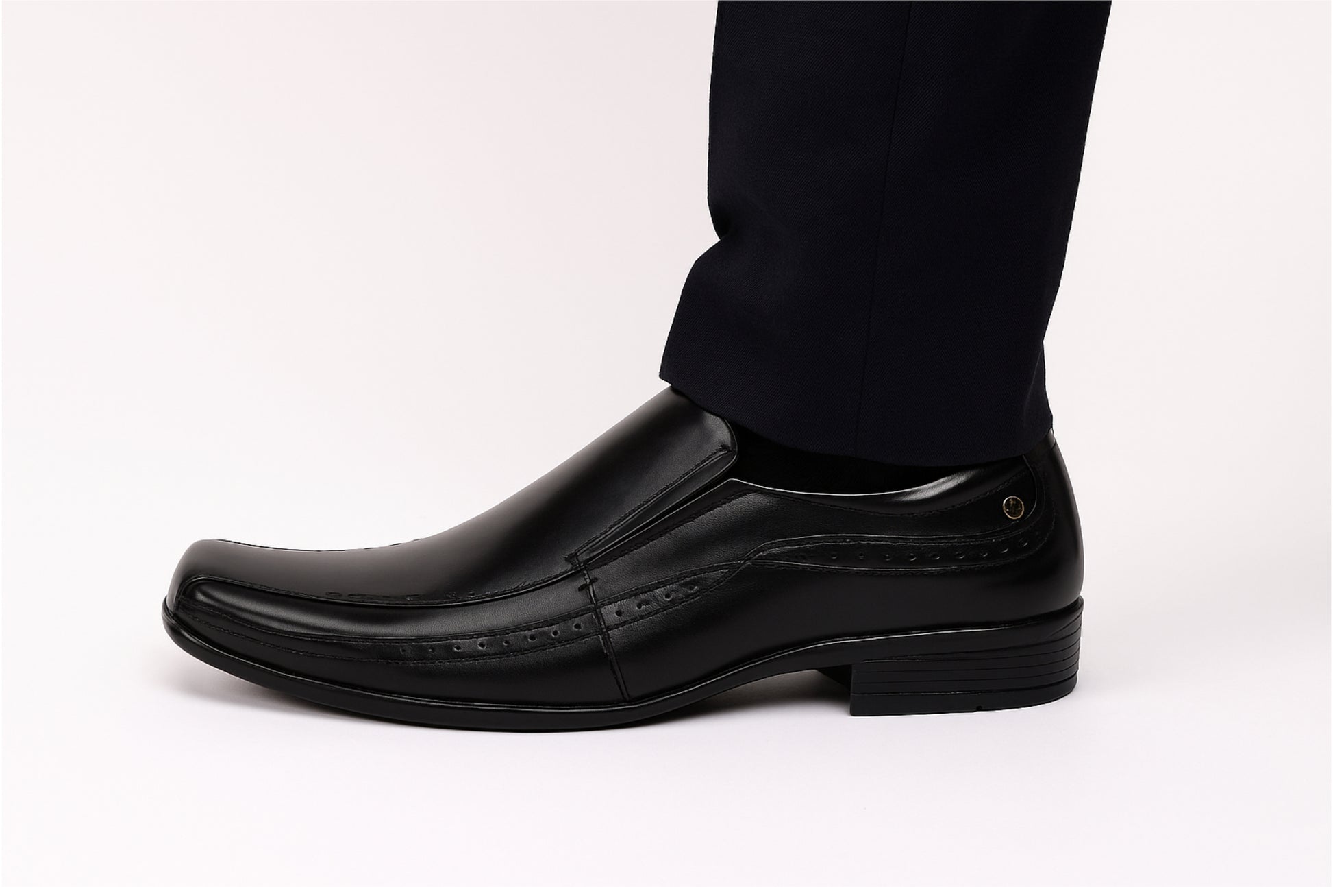 Black Leather Slip-On Shoes For Men's Formal Pair