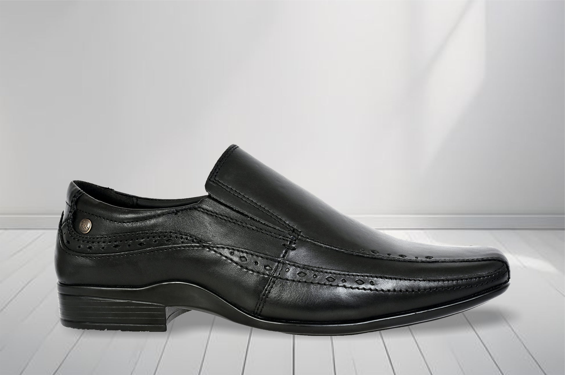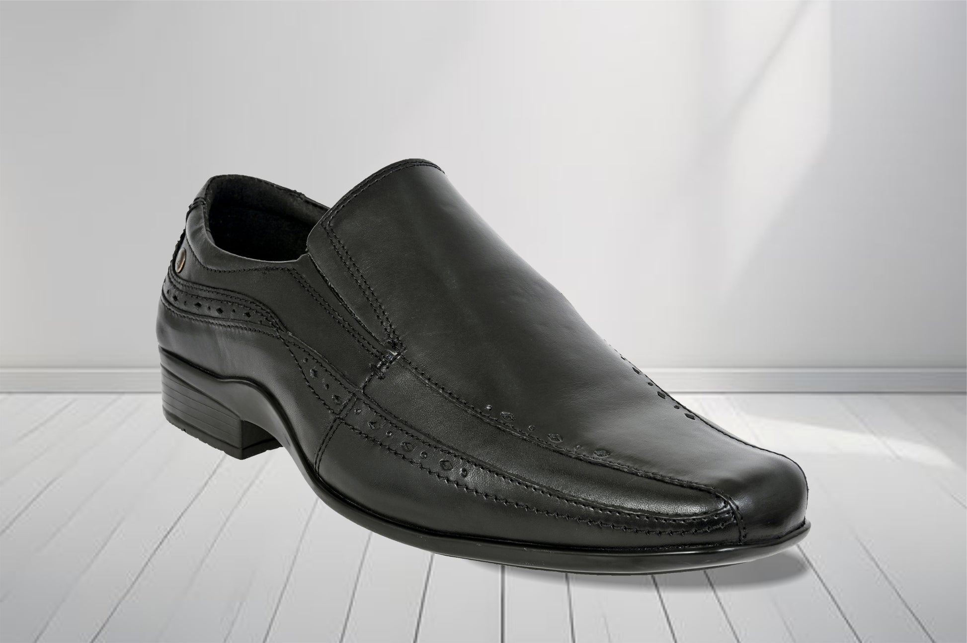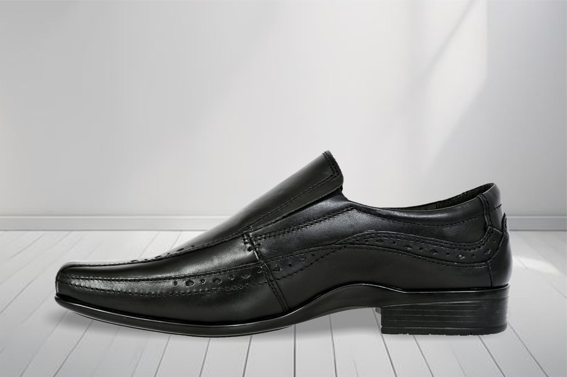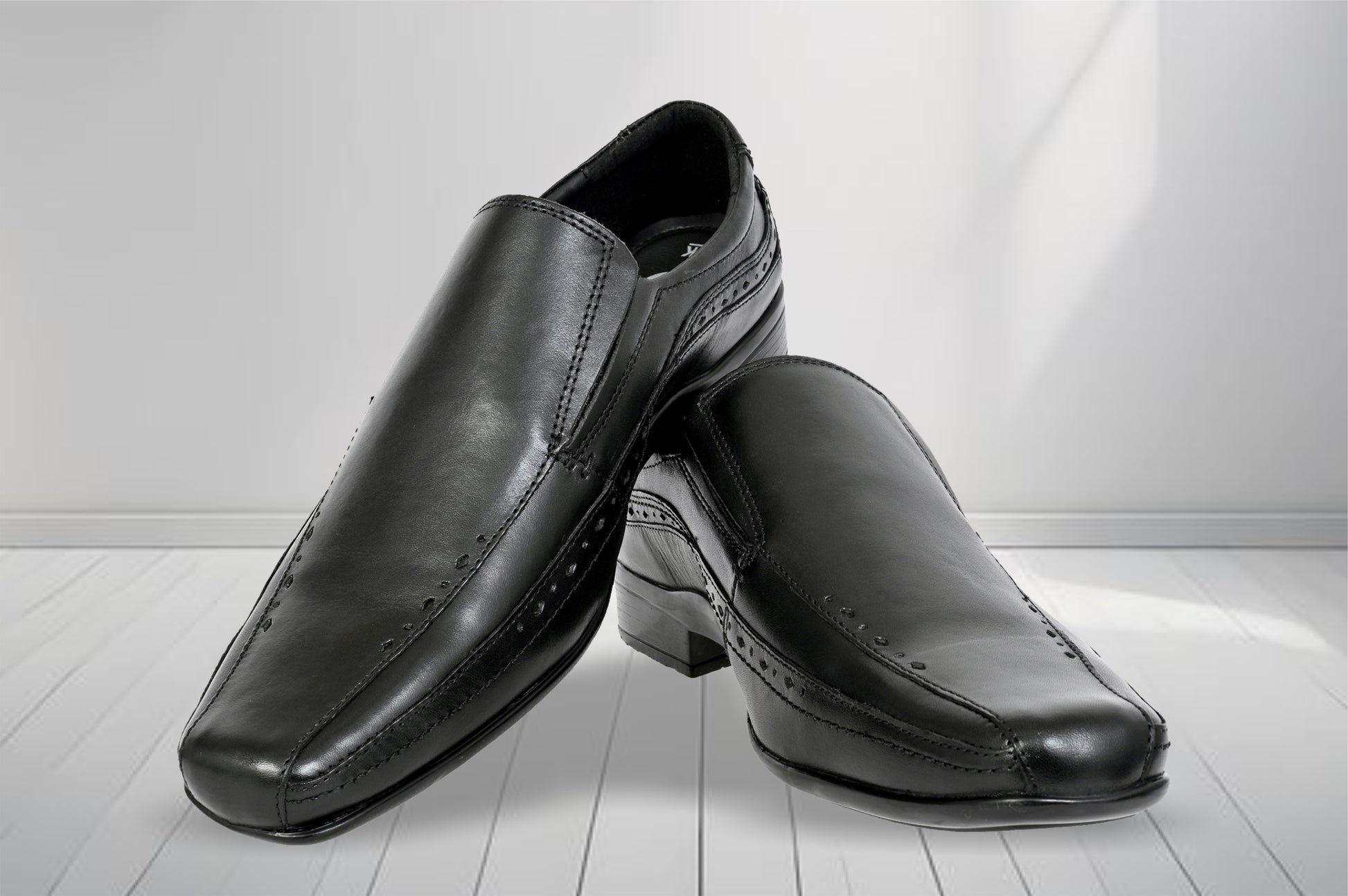 Black Leather Slip-On Shoes For Men's Formal Pair