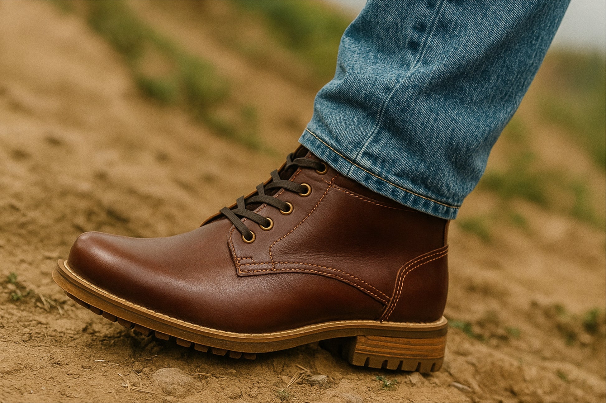 Brown Genuine Leather Men's Lace-up Boots For Casual & Party Wear