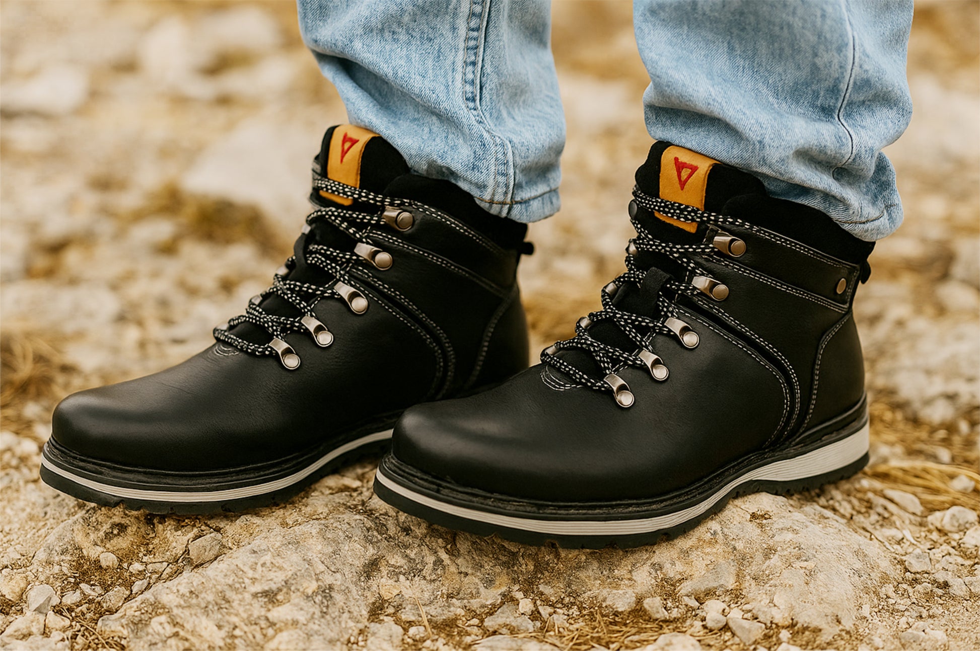 An Essential For All Bikers & Mountaineer Or those who love To Go for Hiking, This Lace-up Boot is Especially Crafted for you. Made with premium quality waxy leather, The classic lace-up boot is styled with textured leather for masculine look. The Dual Coloured Thermoplastic Rubber (TPR) sole gives Excellent Durability, Strong Grasp, Slip Resistant & High Strength. It is best worn with jeans, cargos, chinos & bell bottoms. It is crafted with breathable cushioned lining that assists in keeping the foot dry and healthy.