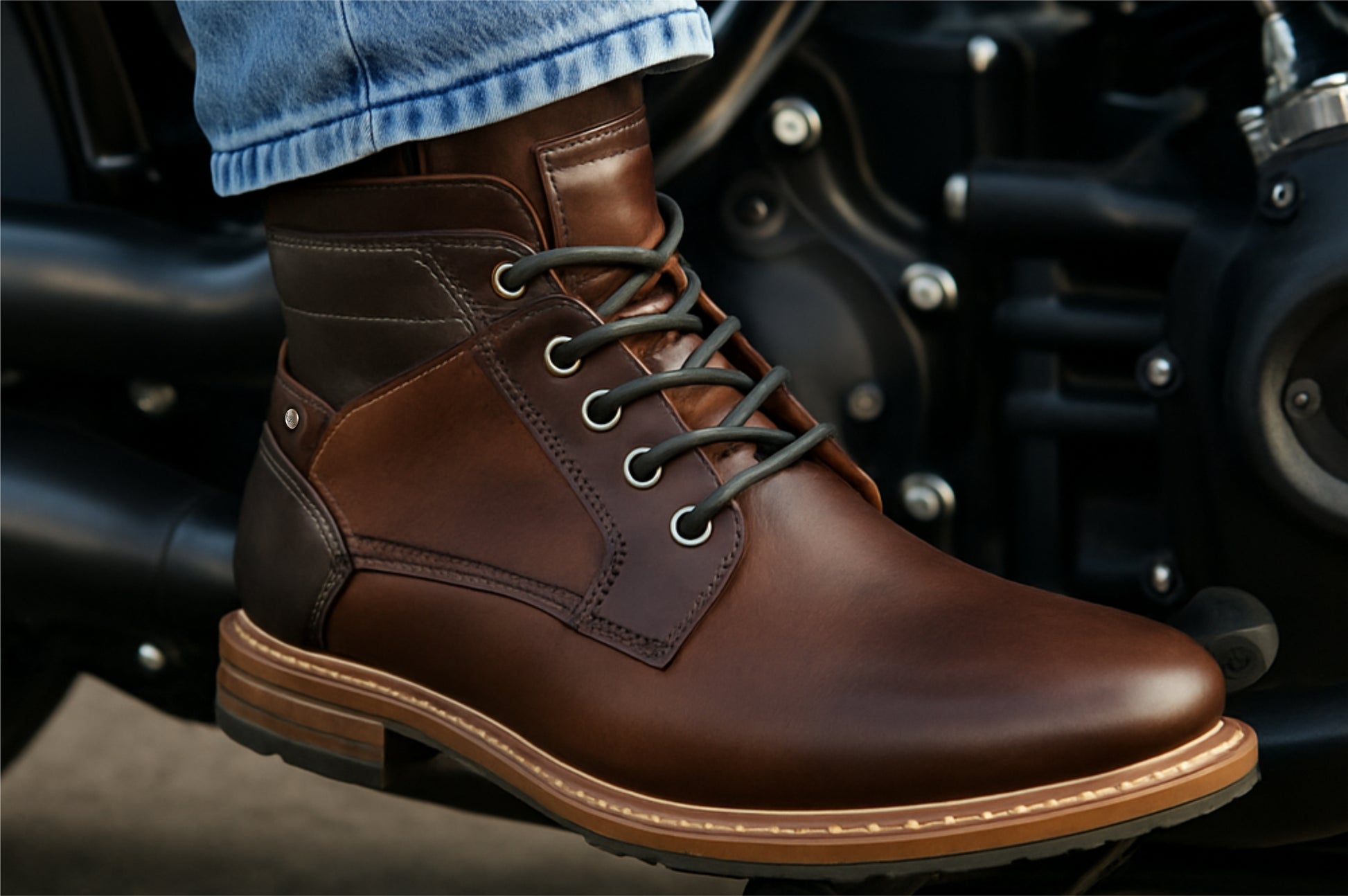 The boot is made with premium quality waxy leather. The classic lace-up boot is styled with textured leather at the counter for masculine look. The thermoplastic rubber (TPR) sole gives excellent durability, strong grasp & high strength. It is best worn with jeans, cargos, chinos & bell bottoms. It is crafted with breathable cushioned lining that assists in keeping the foot dry and healthy.