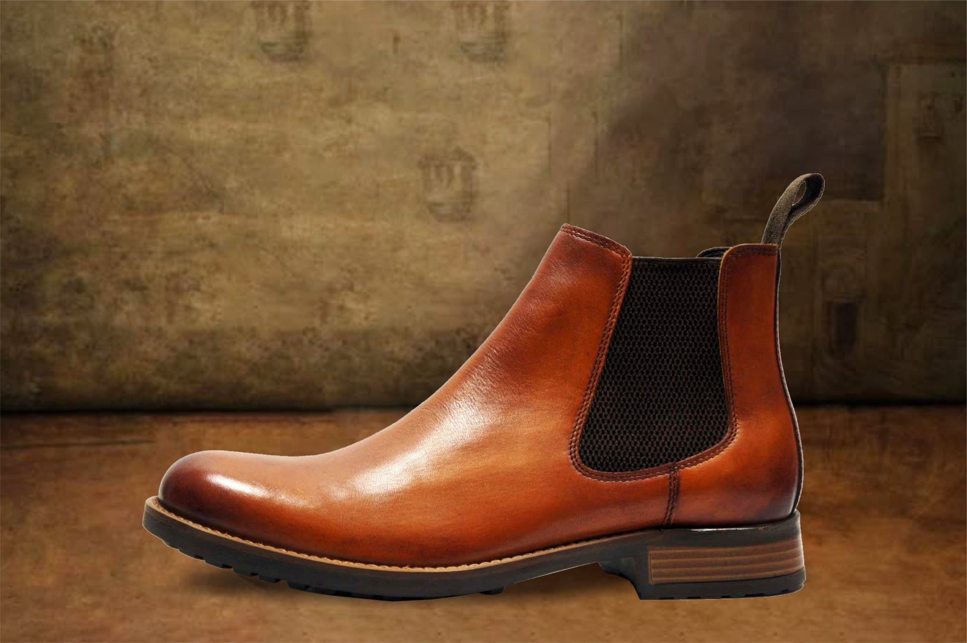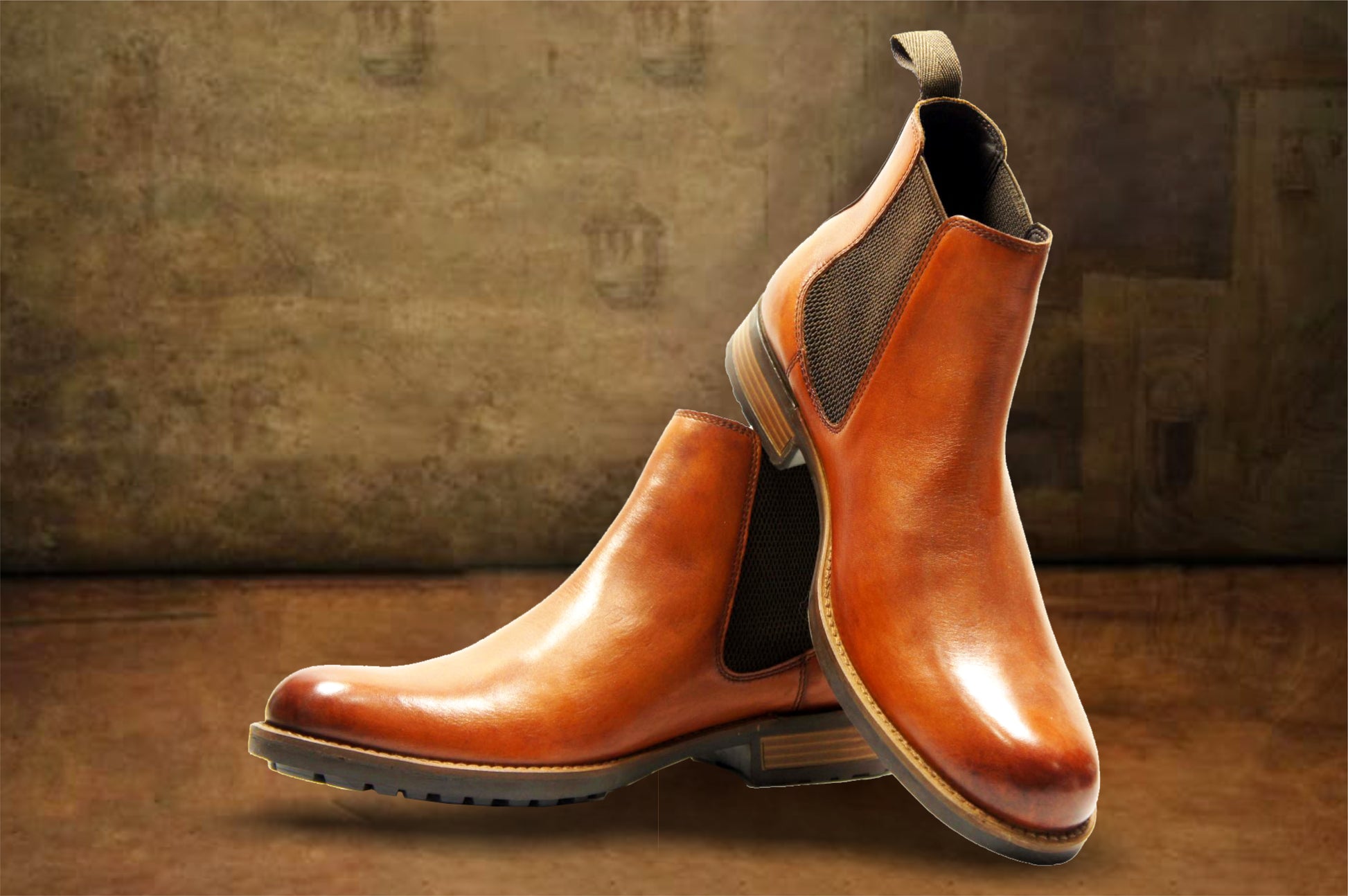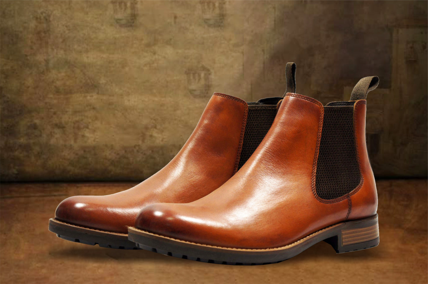 Tan Genuine Leather Men's Chelsea Boots For Casual & Party Wear