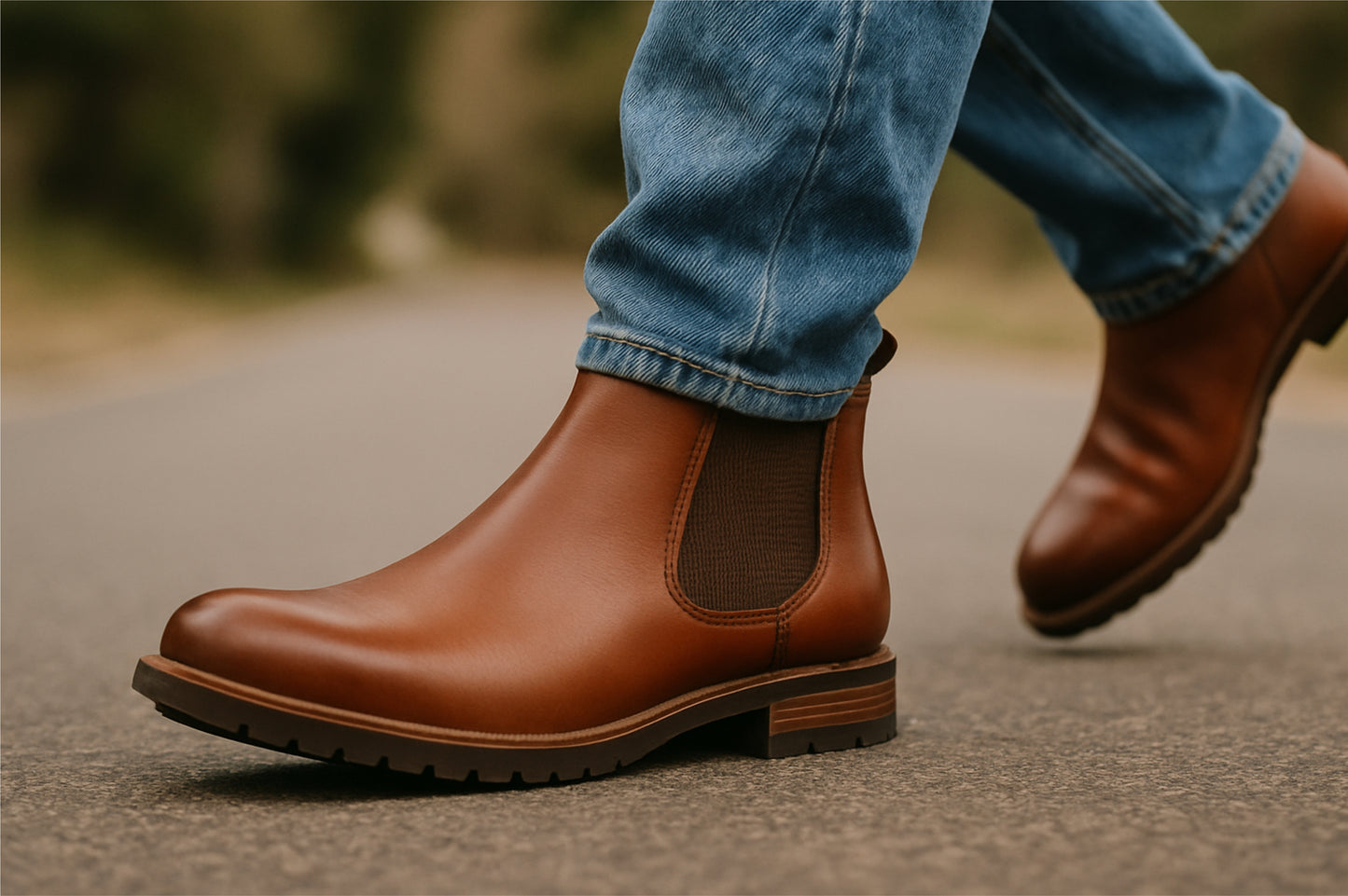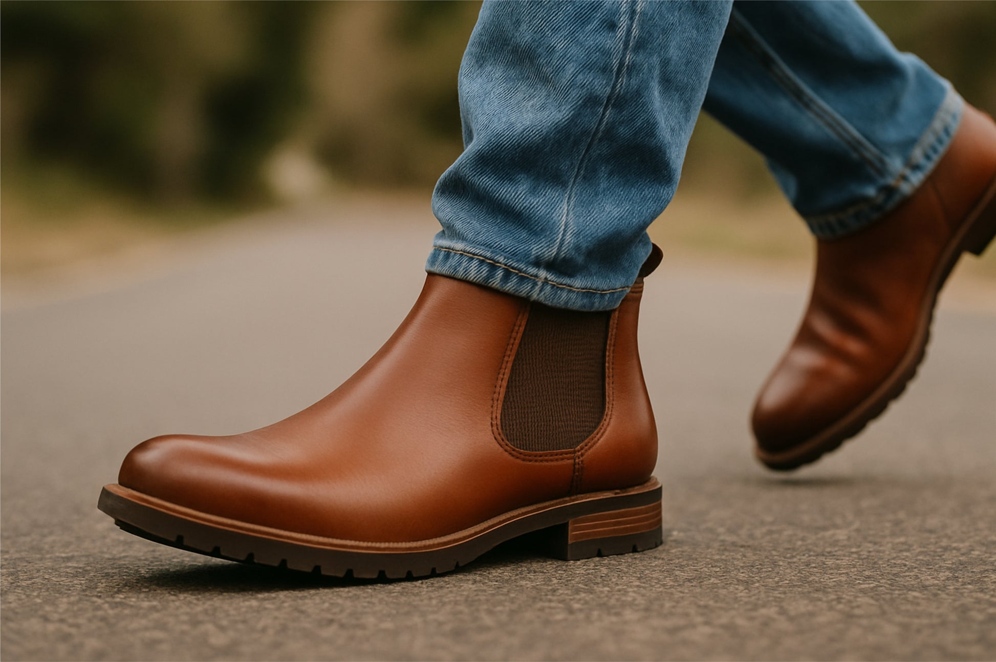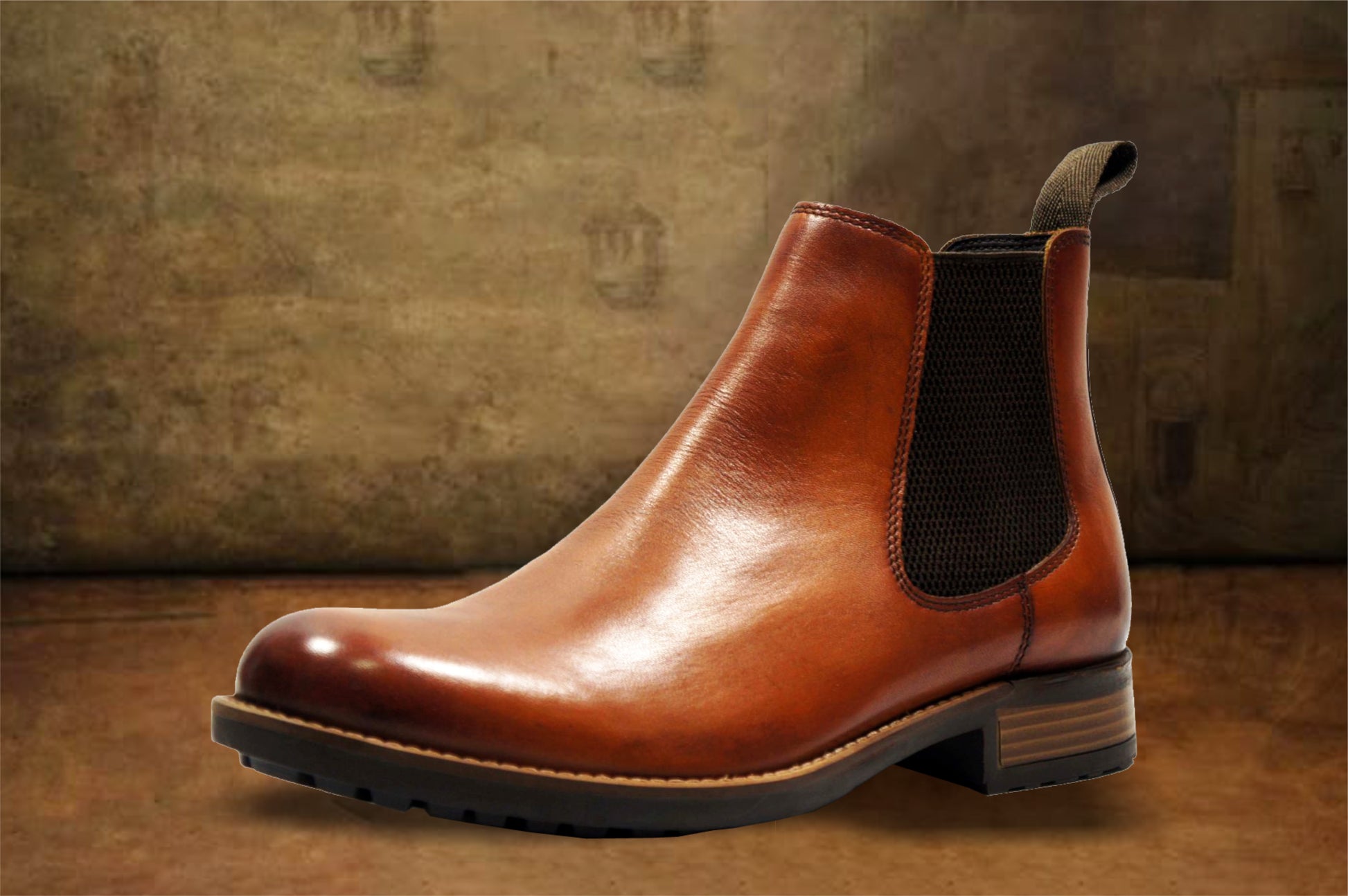 Tan Genuine Leather Men's Chelsea Boots For Casual & Party Wear