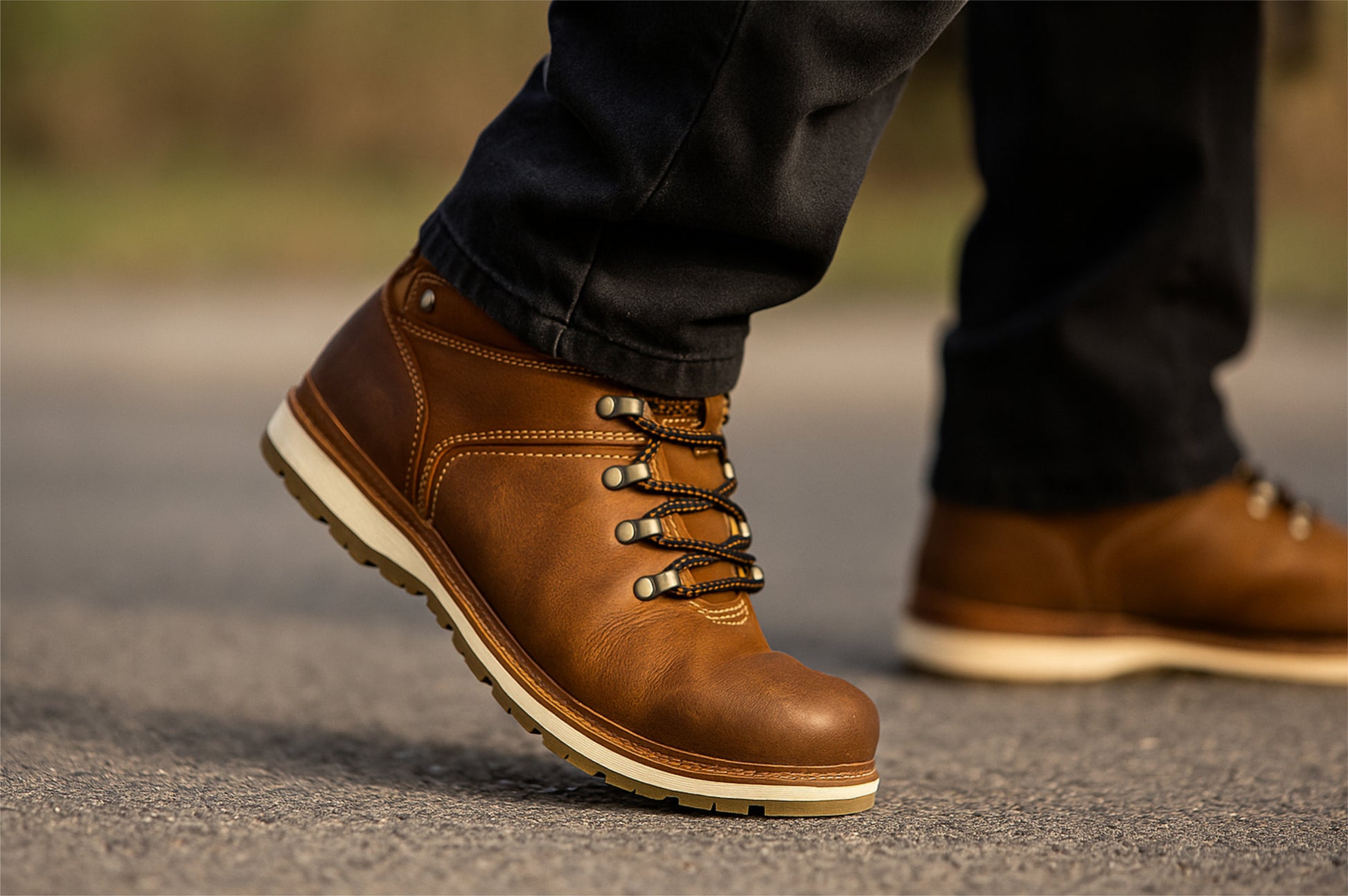 An Essential For All Bikers & Mountaineer Or those who love To Go for Hiking, This Lace-up Boot is Especially Crafted for you. Made with premium quality waxy leather, The classic lace-up boot is styled with textured leather for masculine look. The Dual Coloured Thermoplastic Rubber (TPR) sole gives Excellent Durability, Strong Grasp, Slip Resistant & High Strength. It is best worn with jeans, cargos, chinos & bell bottoms. It is crafted with breathable cushioned lining that assists in keeping the foot dry and healthy.
