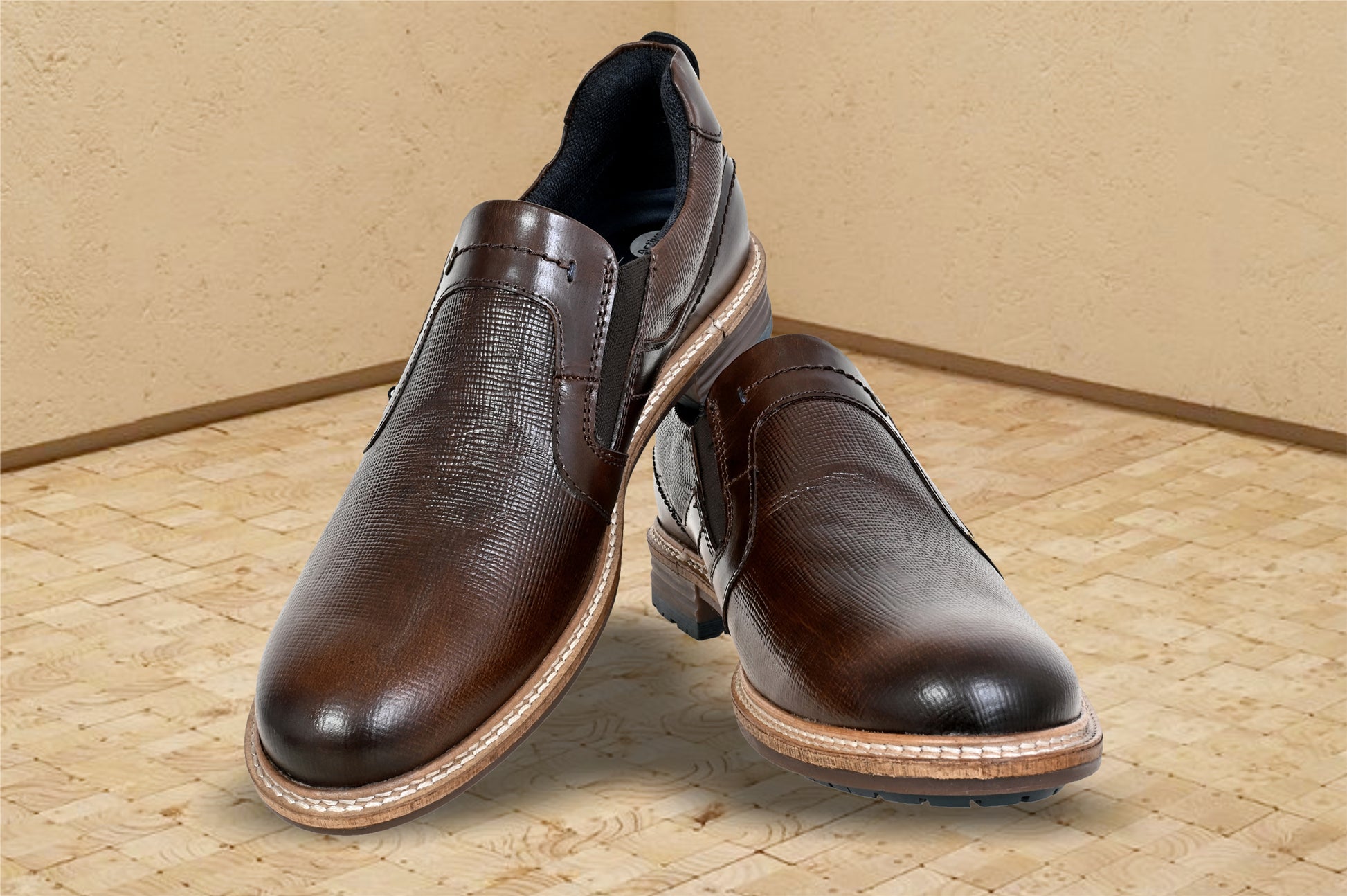 The shoe is made with premium quality genuine leather. The classic formal wear slip-on is styled with textured leather. The Thermo plastic Rubber (TPR) sole with natural shoe welt adds up to a unique style quotient. It is crafted with breathable cushioned lining assists in keeping the foot dry and healthy. The extra padded lycra socks with memory foam gives long lasting comfort. It is best worn with TROUSERS, PANTS, SUITS, TUXEDOS & JEANS.