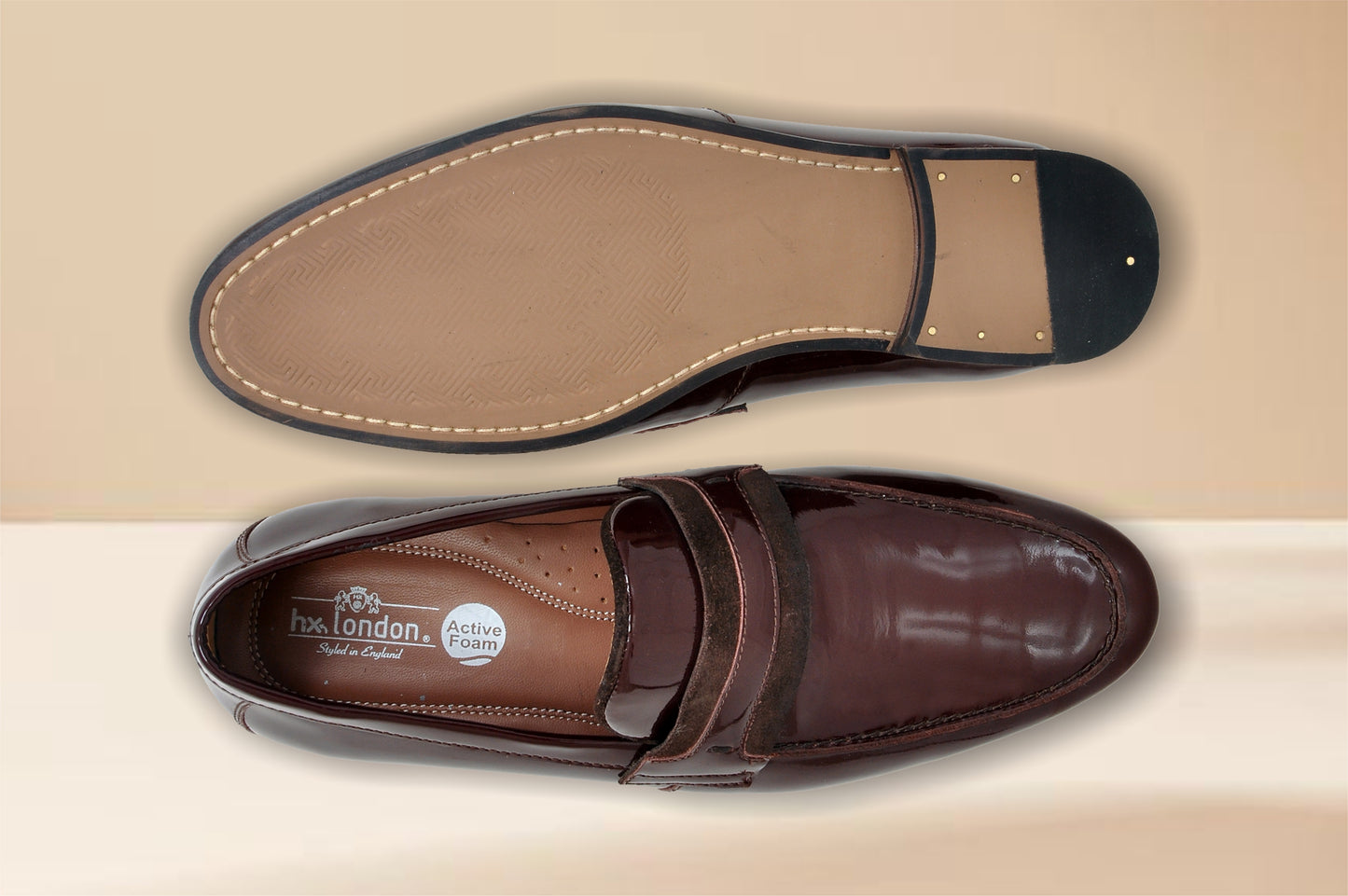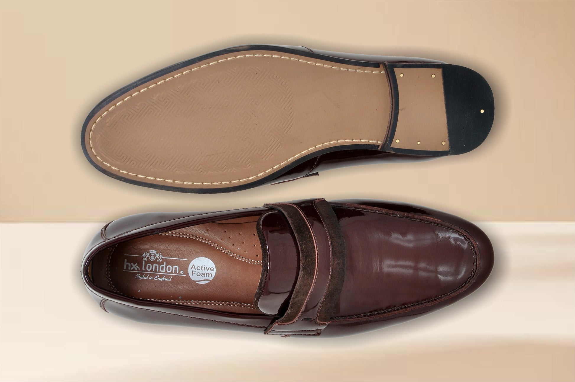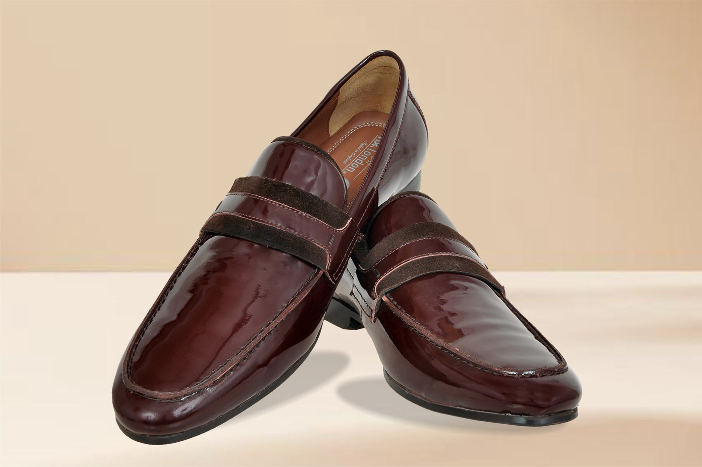 This exotic moccasin shoe is made of genuine patent leather. This elegant design is a classic wedding & party dress shoe. The shoe is crafted with handmade resin sole that adds up to a unique style quotient. It is designed with leather inner lining with premium finish. The extra padded pu moulded socks with memory foam gives long lasting comfort & keeps the foot dry and sweat free. It is best styled with tuxedos, suits, trousers, jeans & chinos.
