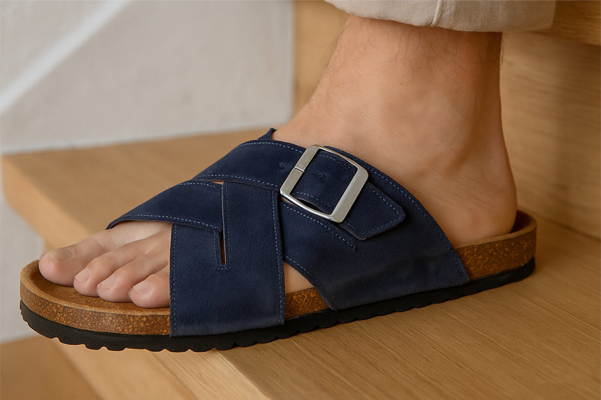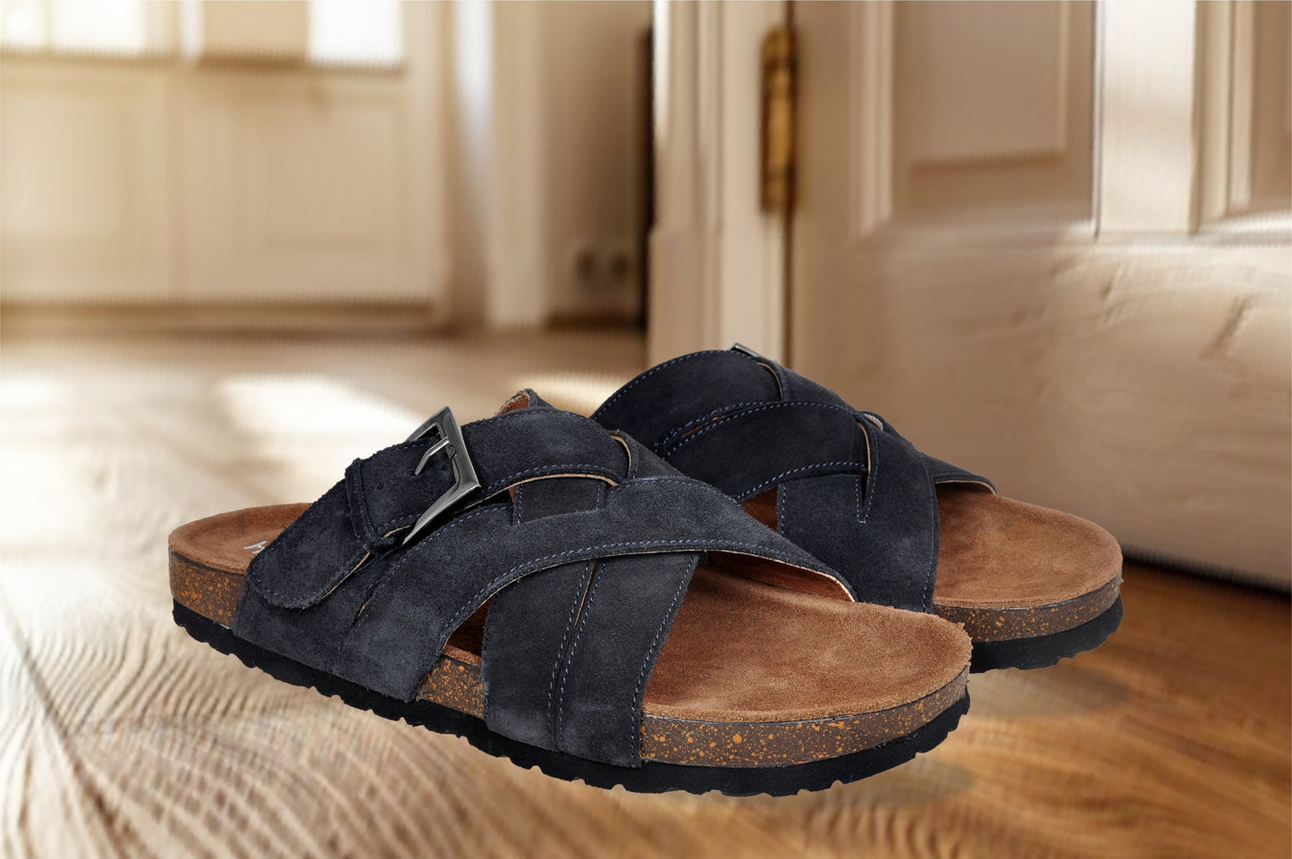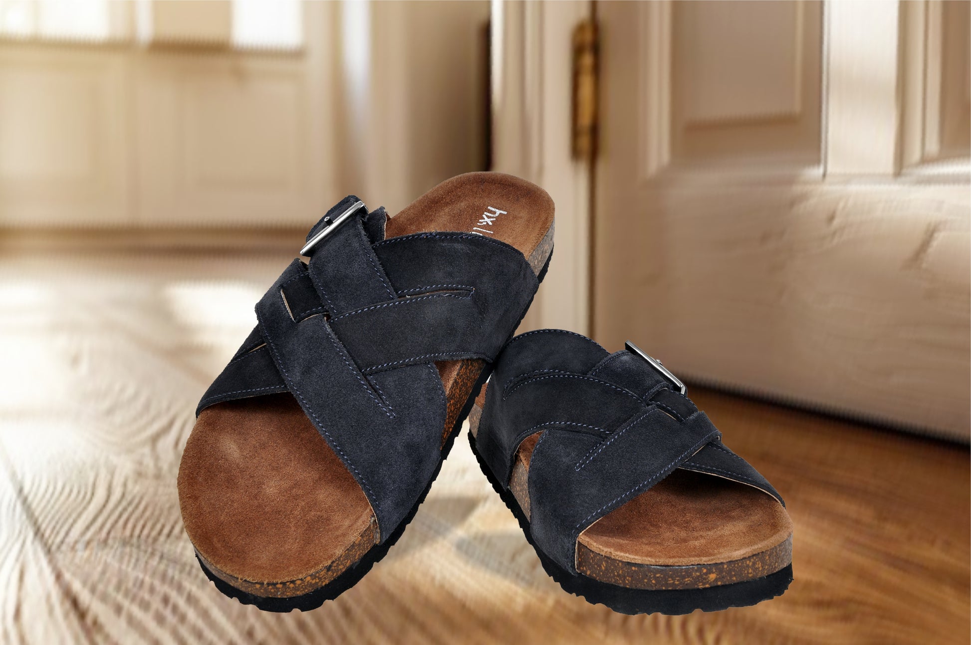 Complete Your Outfit With Practical And Stylish Suede Sandals By Hx London. Handcrafted By Indian Designers, These Slip-On Sandals Are Perfect For Both Formal And Casual Occasions. Made With High-Quality Materials, These Flats Offer Comfort And Style In One Pair. Solve Your Footwear Dilemma With These Versatile And Trendy Sandals This Season of Festives & Celebrations