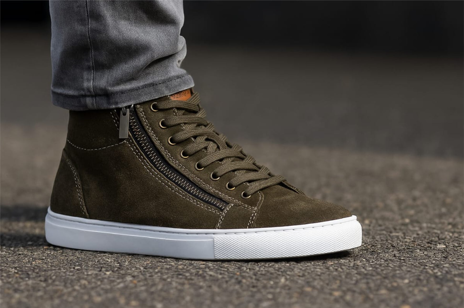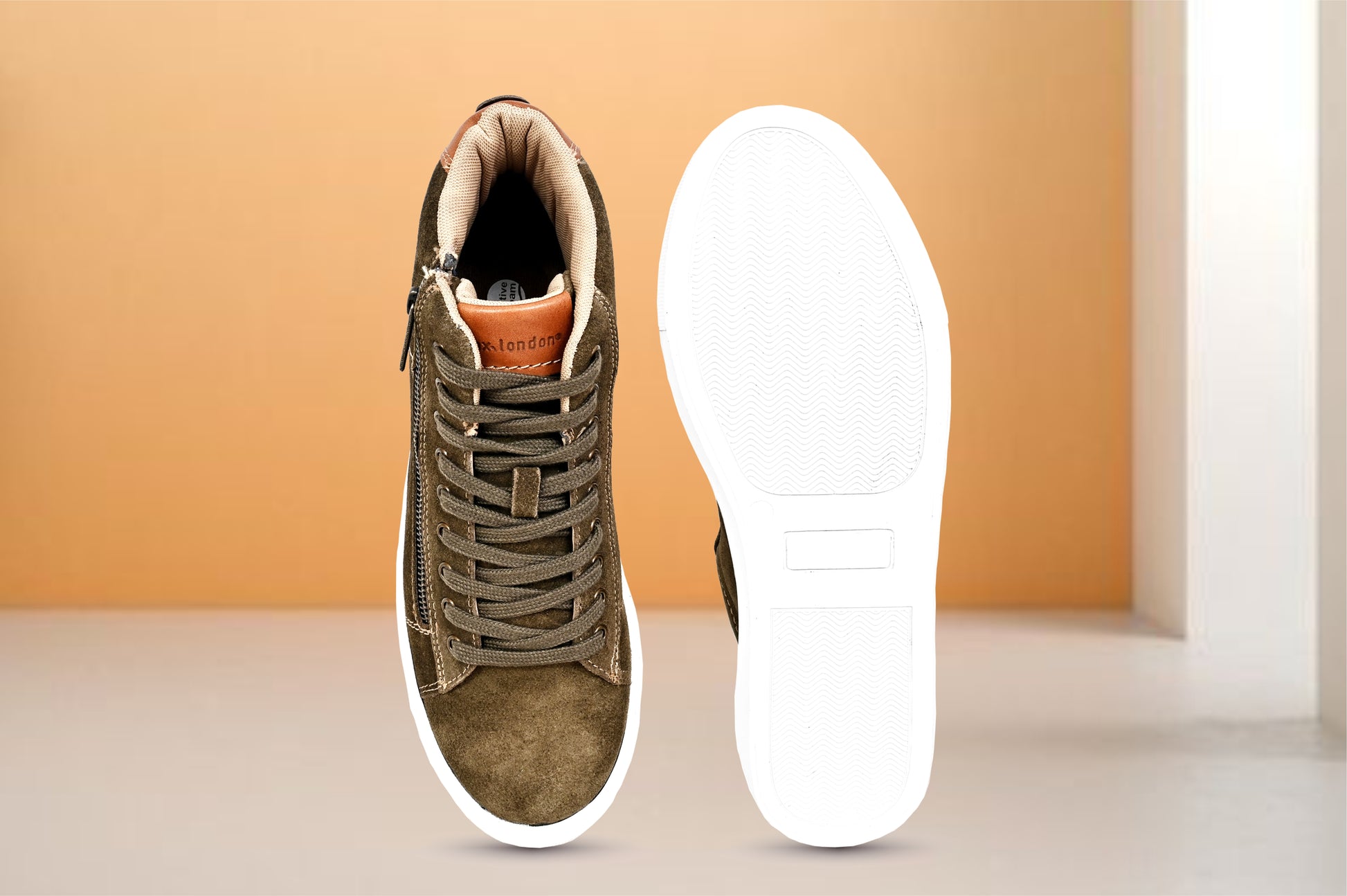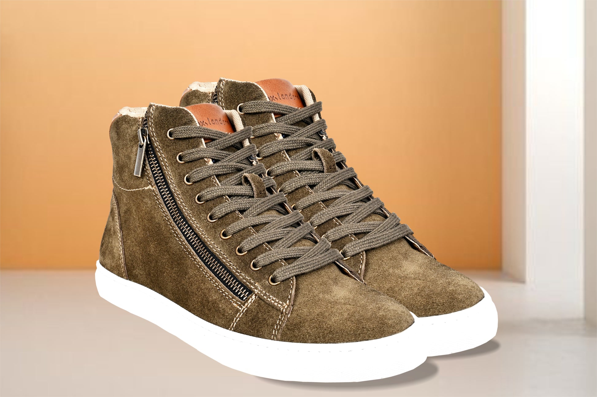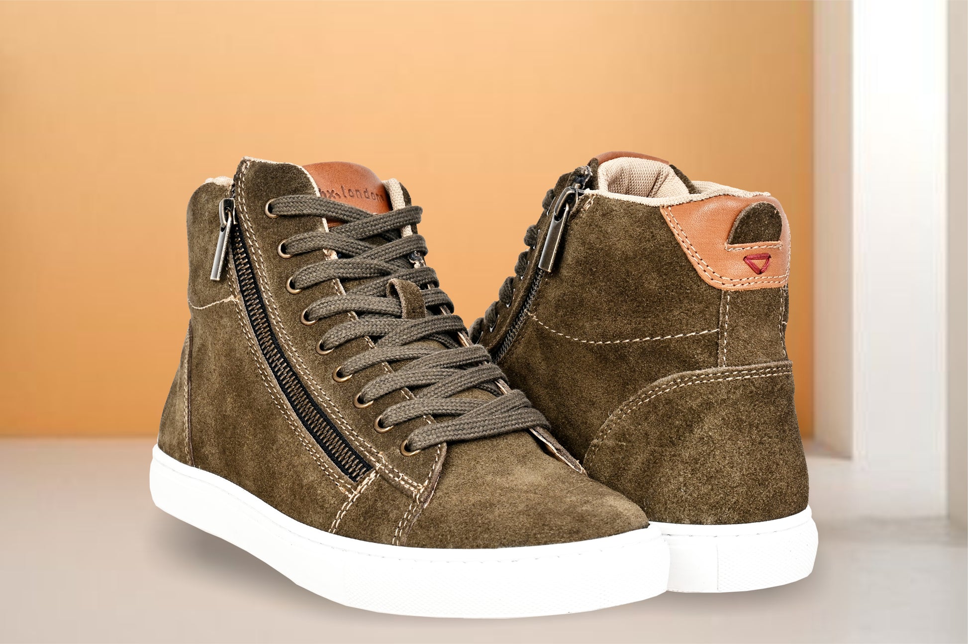 This all time classic Ankle Length Sneaker is made with premium quality suede leather. The Lace-up Sneaker is styled with side zip for easy wear. The casual & party wear dress shoe will bring you style and comfort. The shoe is crafted with antiskid rubber sole that adds upto a unique style quotient. The soft & breathable textile lining helps in keeping the feet sweat free, fresh and at ease. This comfy sneaker are equipped with pu moulded socks padded with memory foam providing long lasting comfort and stability. It is best styled with jeans, chinos, capris & cargos.