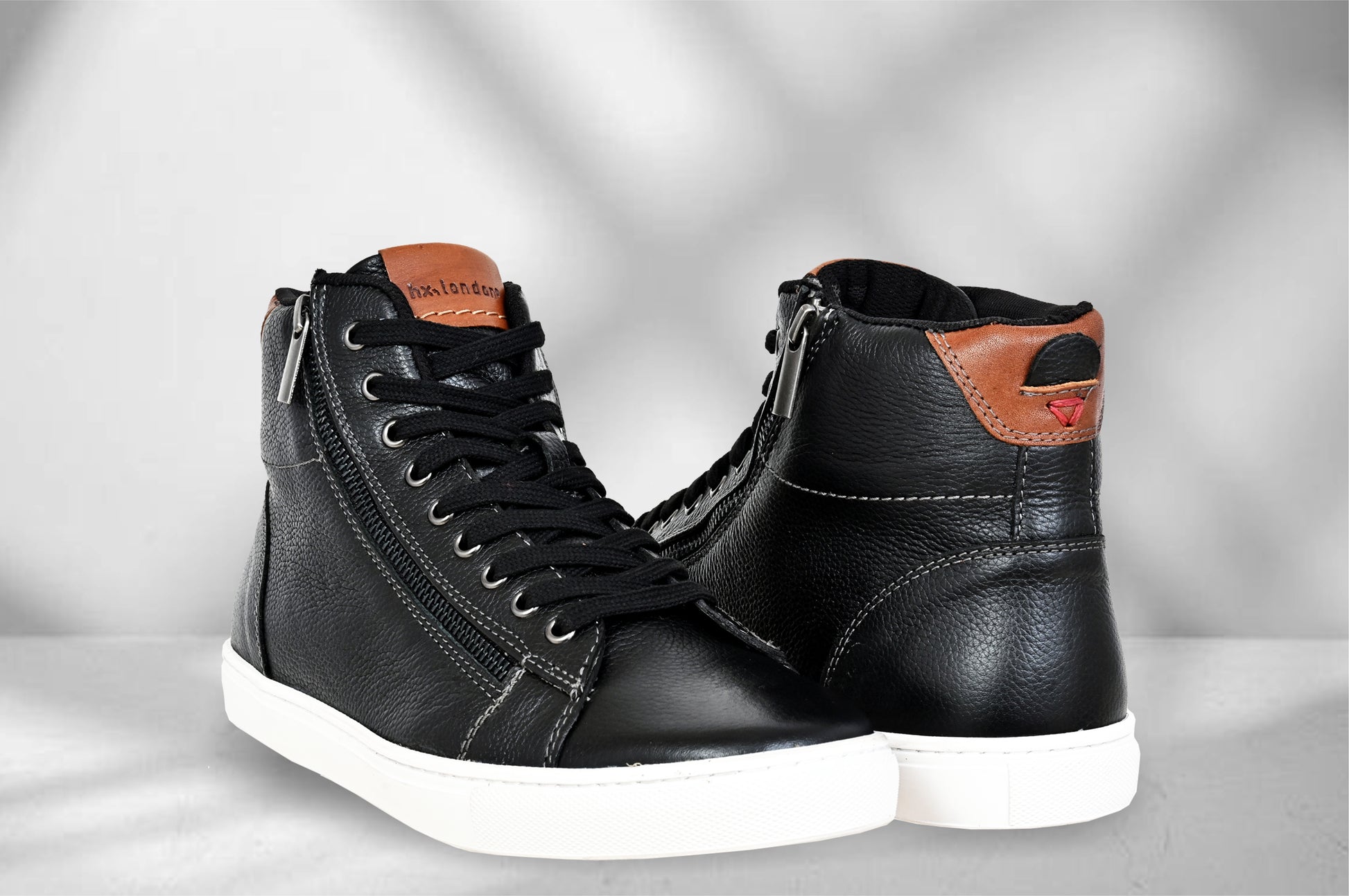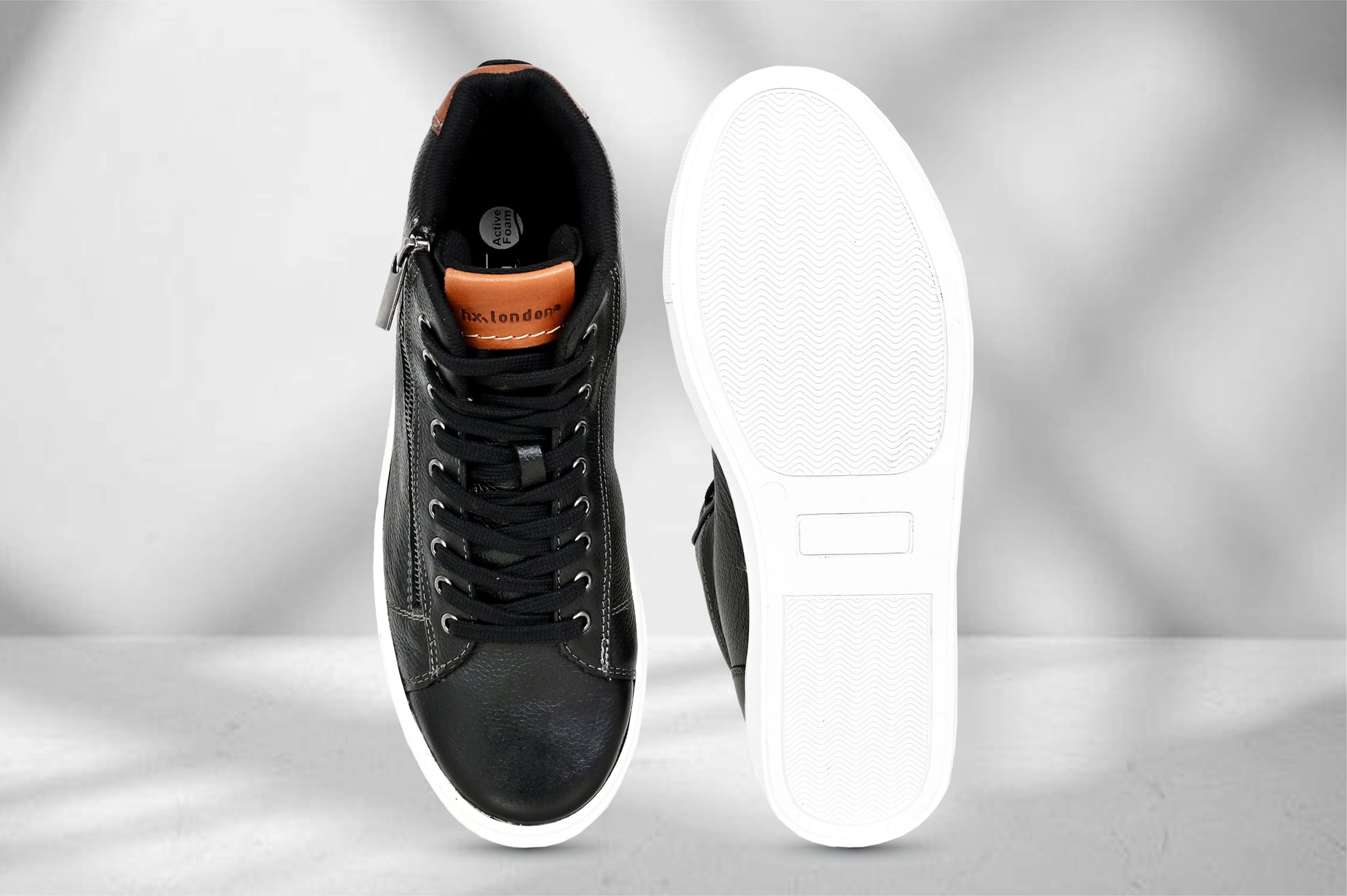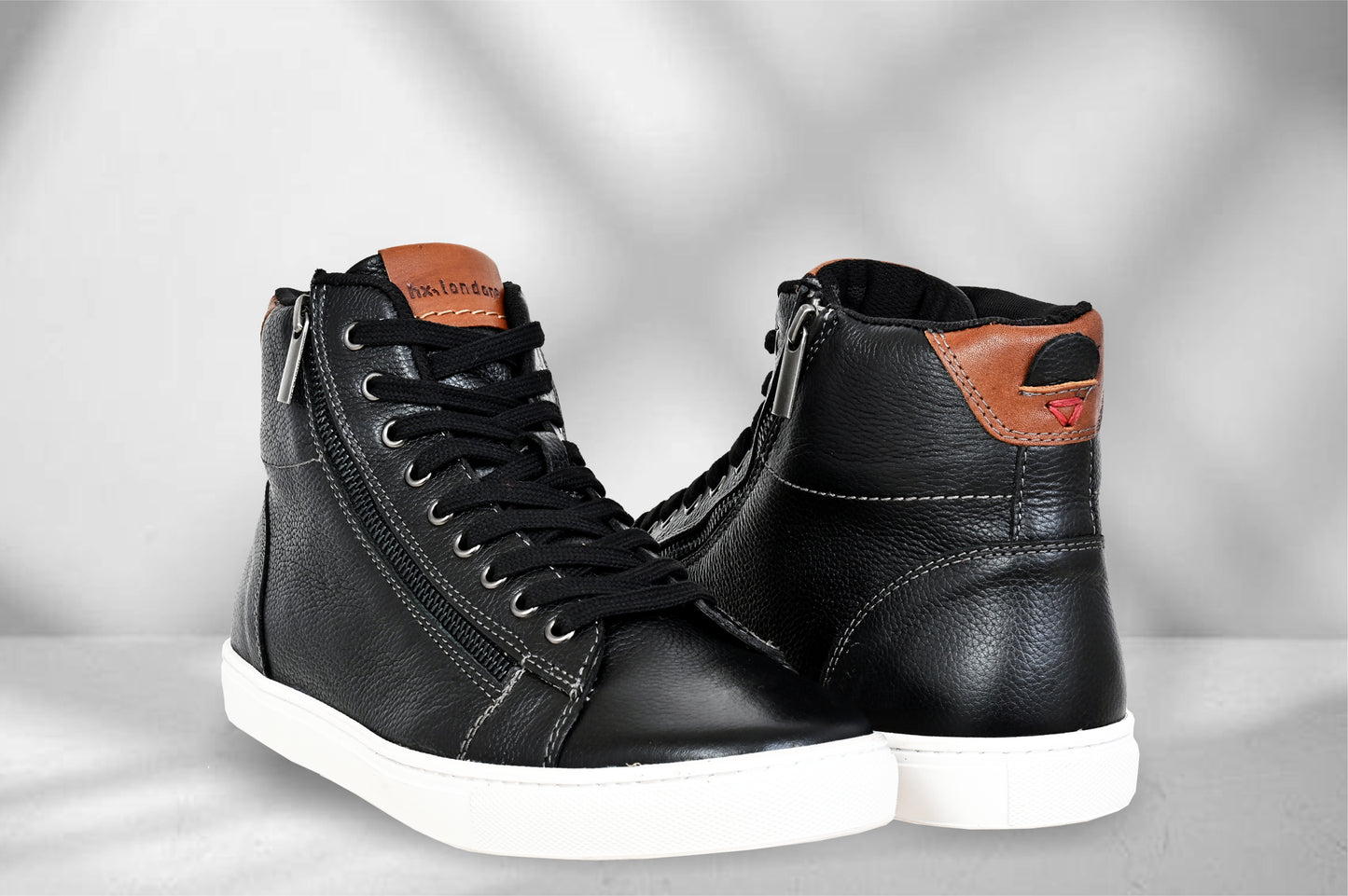 This all time classic Ankle Length Sneaker is made with premium quality crust leather. The Lace-up Sneaker is styled with side zip for easy wear. The casual & party wear dress shoe will bring you style and comfort. The shoe is crafted with antiskid rubber sole that adds upto a unique style quotient. The soft & breathable textile lining helps in keeping the feet sweat free, fresh and at ease. This comfy sneaker are equipped with pu moulded socks padded with memory foam providing long lasting comfort and stability. It is best styled with jeans, chinos, capris & cargos.