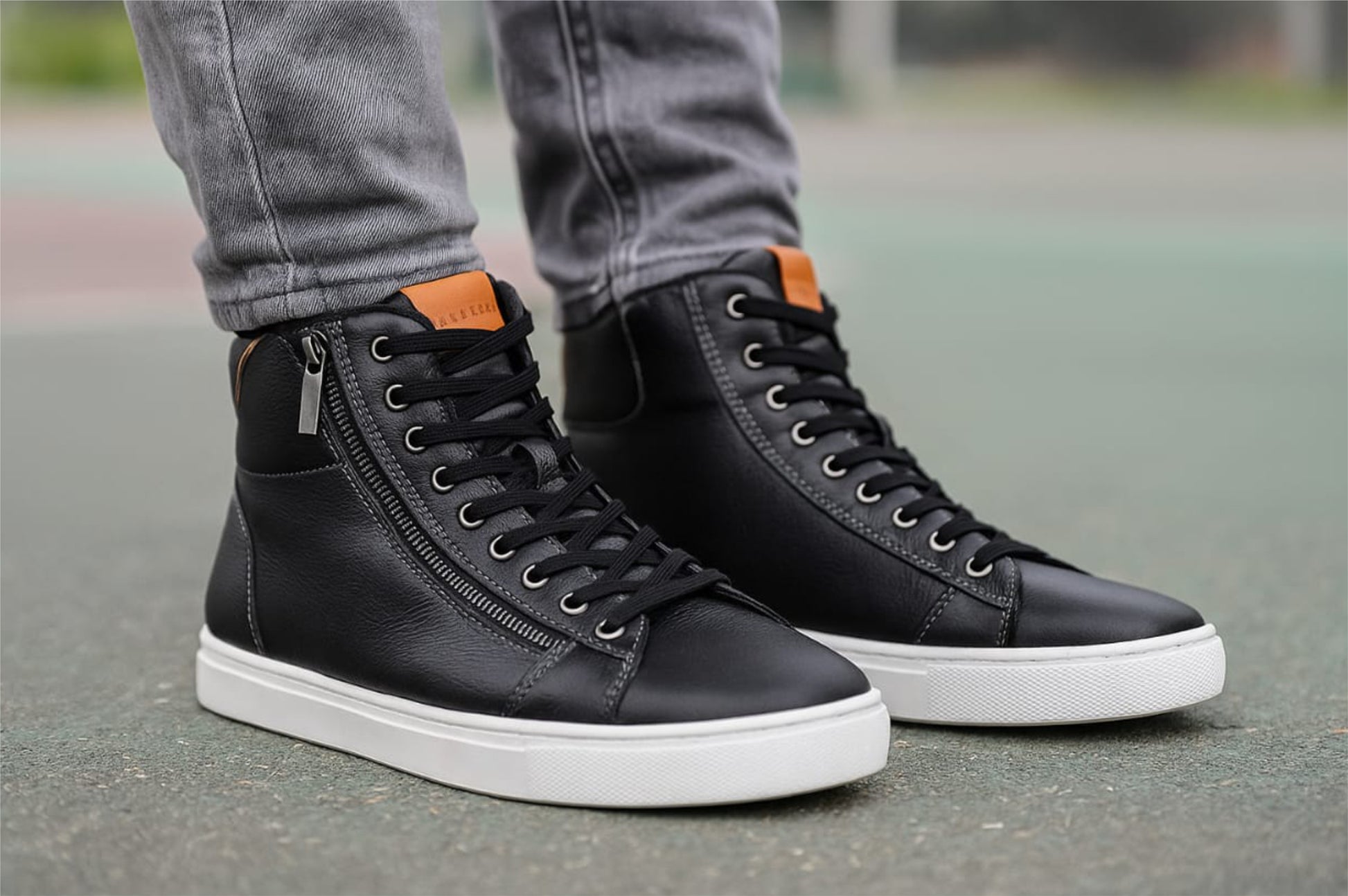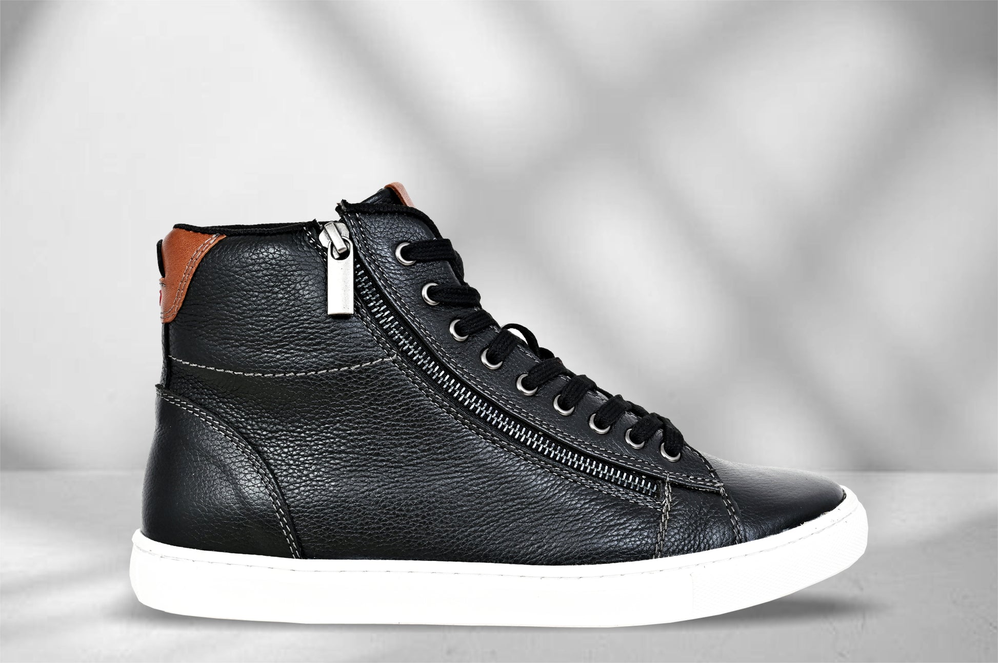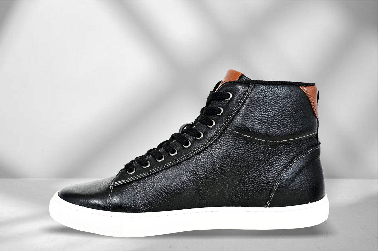 This all time classic Ankle Length Sneaker is made with premium quality crust leather. The Lace-up Sneaker is styled with side zip for easy wear. The casual & party wear dress shoe will bring you style and comfort. The shoe is crafted with antiskid rubber sole that adds upto a unique style quotient. The soft & breathable textile lining helps in keeping the feet sweat free, fresh and at ease. This comfy sneaker are equipped with pu moulded socks padded with memory foam providing long lasting comfort and stability. It is best styled with jeans, chinos, capris & cargos.