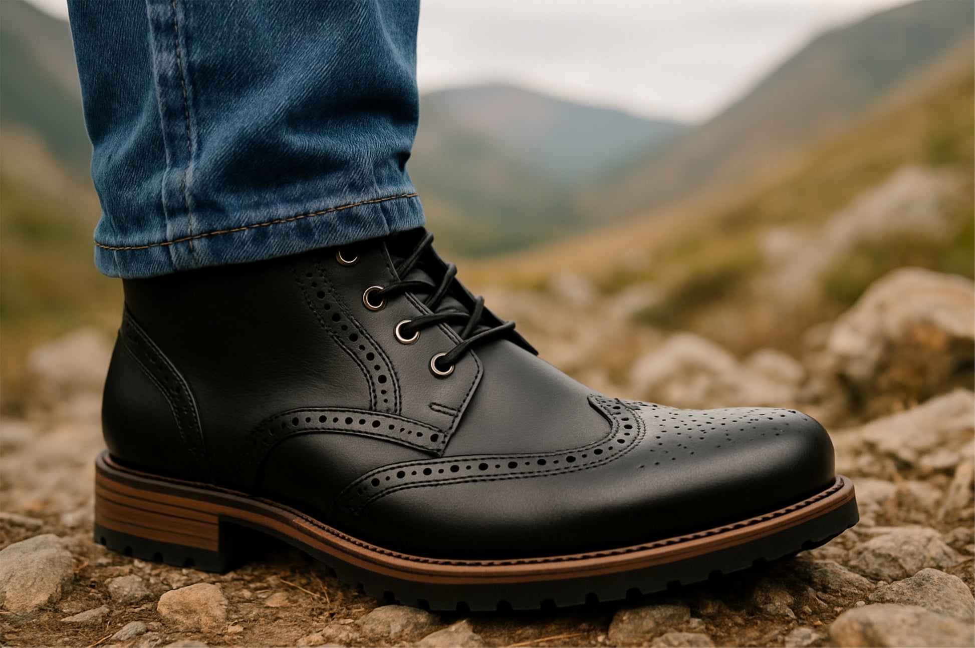 The brogue lace-up boot is made with premium quality waxy leather. The welted thermoplastic rubber (TPR) sole with topography gives excellent durability, attractive styling & higher strength. The boot comes with synthetic inner lining & extra padded pu moulded socks with memory foam providing long lasting comfort. It is best worn with jeans, cargos, chinos & bell bottoms.