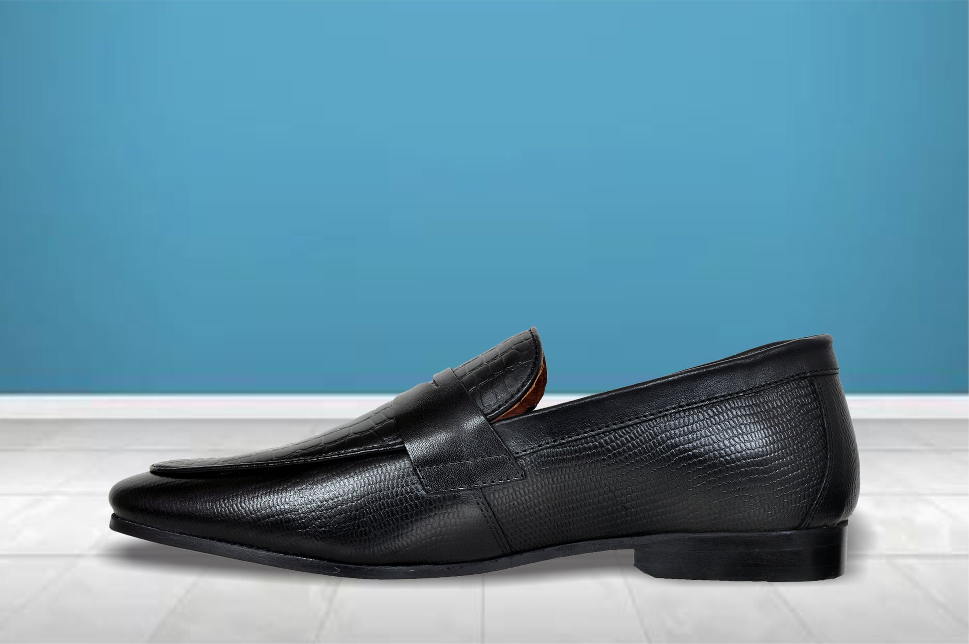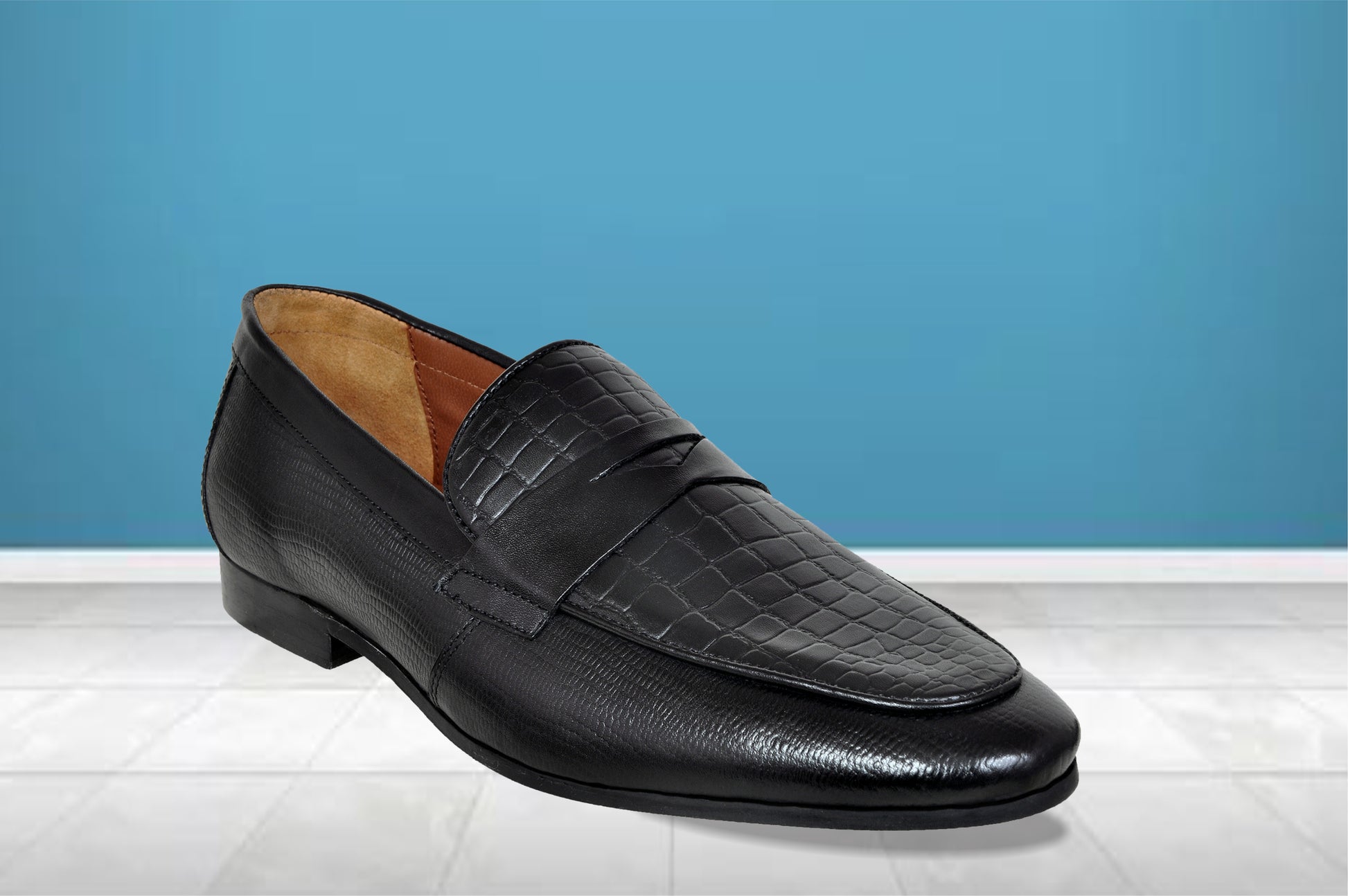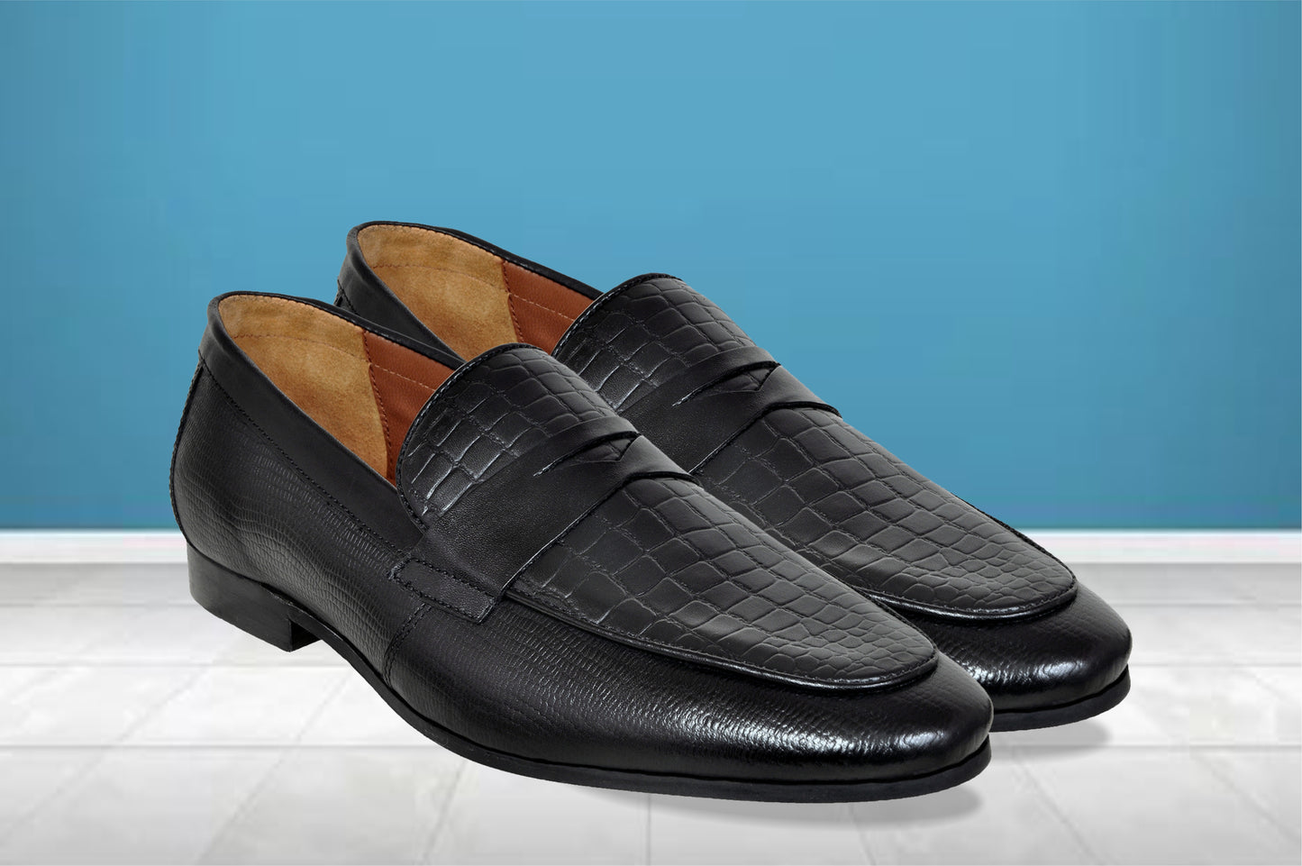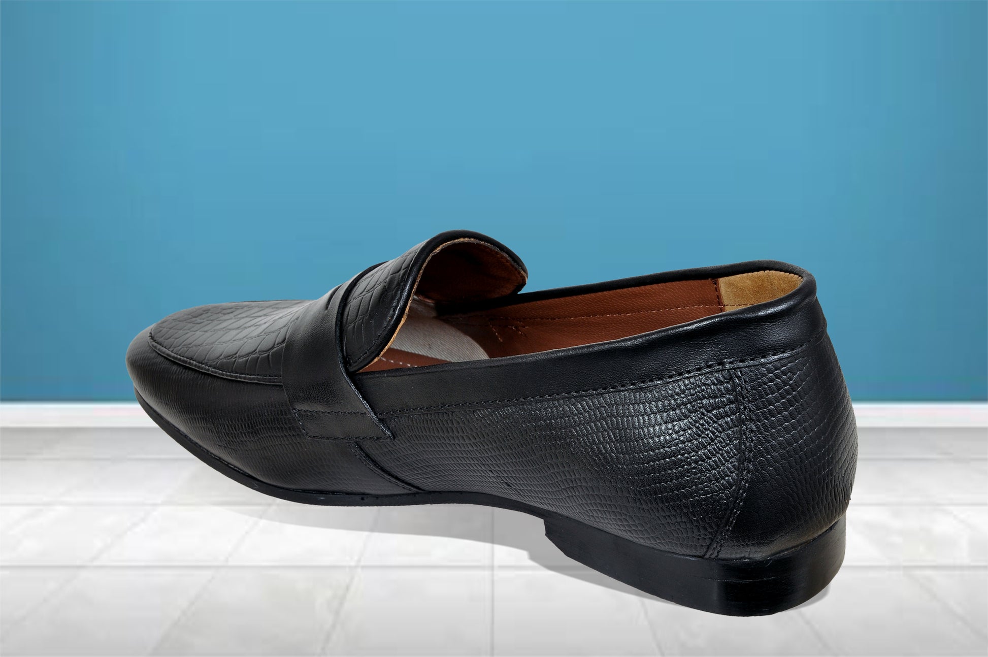 This all occasion moccasin is made of genuine croco print leather. The shoe is crafted with handmade resin sole that adds up to a unique style quotient. It is designed with leather inner lining with premium finish. The extra padded pu moulded socks with memory foam gives long lasting comfort & keeps the foot dry and sweat free. It is best styled with tuxedos, suits, trousers, jeans & chinos.
