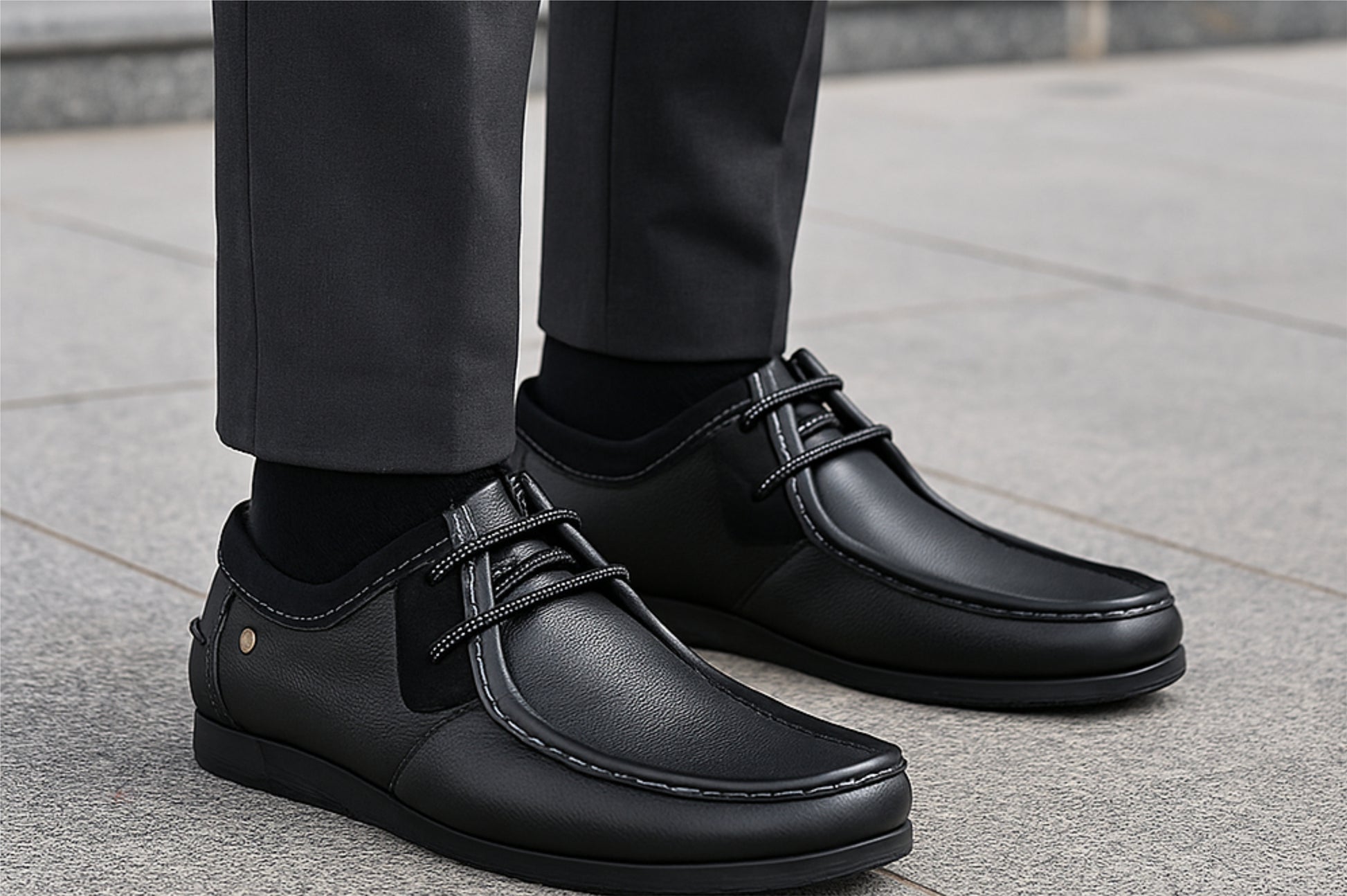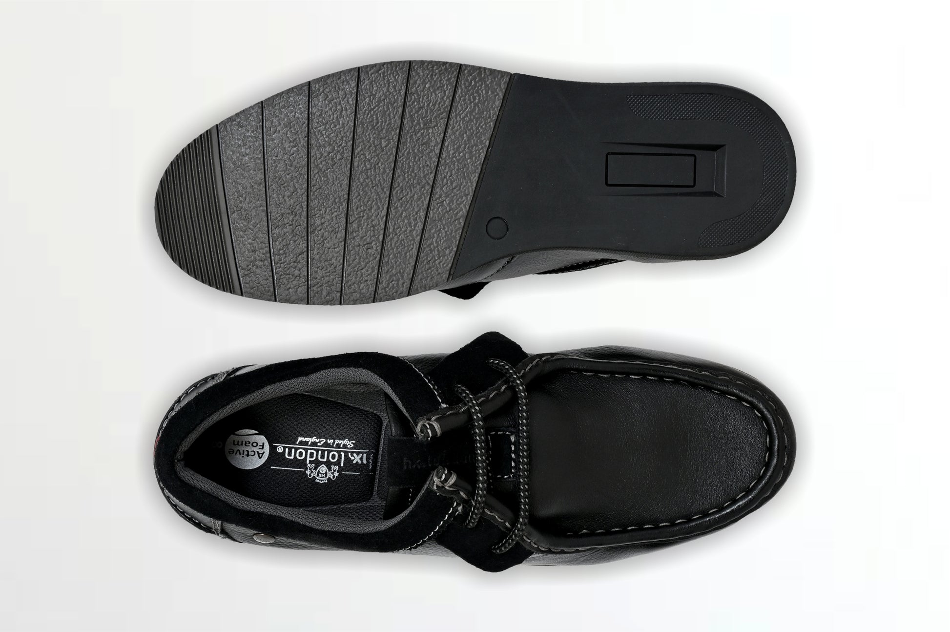 The Wallabee has become an iconic classic in the Hx London collection across the country for its elegant moccasin construction & structural silhouette. Featuring clean and simple lines, this extreme comfortable lace-up shoe is crafted from premium quality leather. equipped with Dual Tone TPR sole, the shoe offers long lasting, comfort and durability.