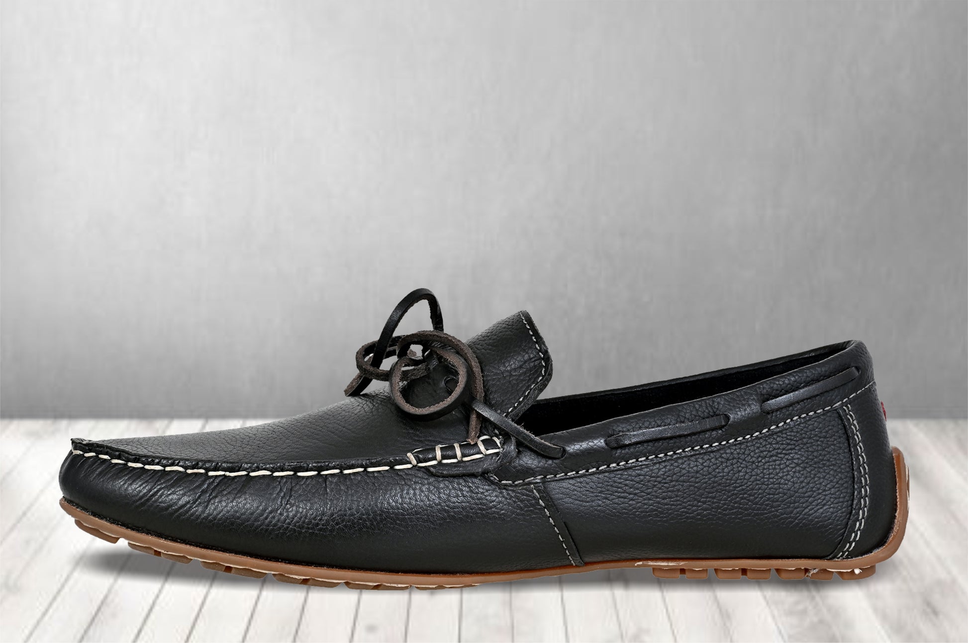 This all time classic loafers are made from genuine leather. Its lightweight construction delivers long lasting comfort. This loafer is styled with leather cord/lace that enhance its luxurious look. The shoe is designed with breathable synthetic lining that helps keeping the foot dry and sweat free. The elegant design is combined with rubber sole that are anti-skid, long lasting & excellent adaptability to different outdoor surfaces. The shoe comes with multiple layer of cushion including latex, memory foam and leather lining at the top. It is best styled with jeans, trousers, chinos & capris.
