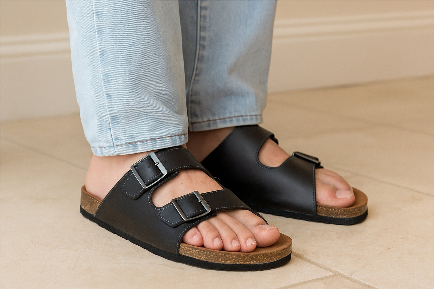 Complete Your Outfit With Practical And Stylish Leather Sandals By Hx London. Handcrafted By Indian Designers, These Slip-On Sandals Are Perfect For Both Formal And Casual Occasions. Made With High-Quality Materials, These Flats Offer Comfort And Style In One Pair. Solve Your Footwear Dilemma With These Versatile And Trendy Sandals This Season of Festives & Celebrations