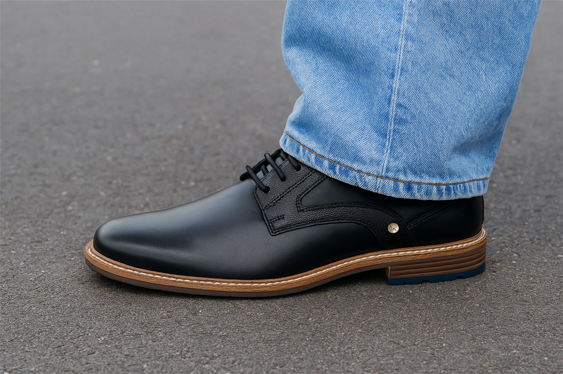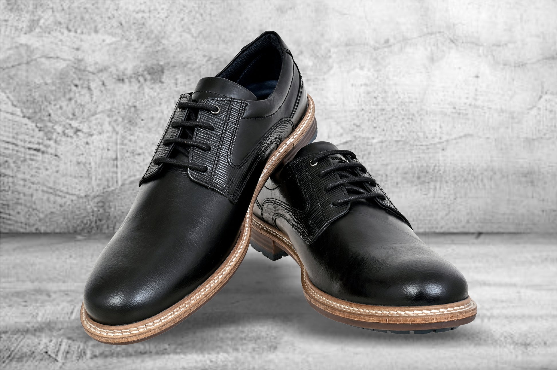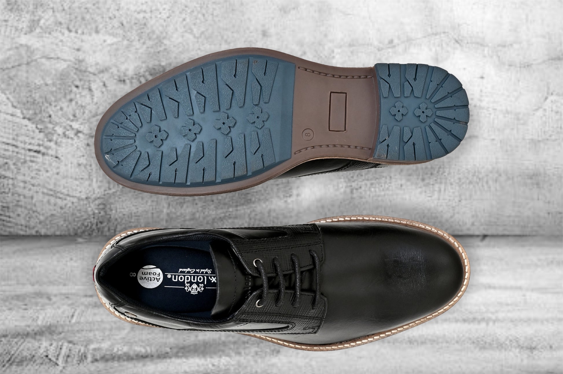 The shoe is made with premium quality genuine leather. The classic formal wear derby is styled with textured leather quarter. The Thermo plastic Rubber (TPR) sole with natural shoe welt adds up to a unique style quotient. It is crafted with breathable cushioned lining assists in keeping the foot dry and healthy. The extra padded lycra socks with memory foam gives long lasting comfort. It is best worn with TROUSERS, PANTS, SUITS, TUXEDOS & JEANS.