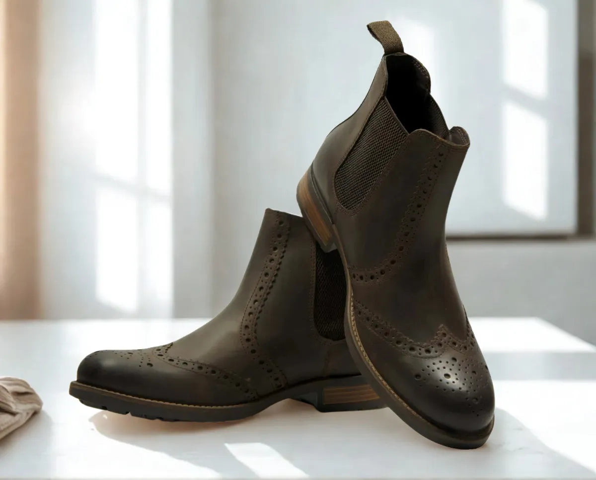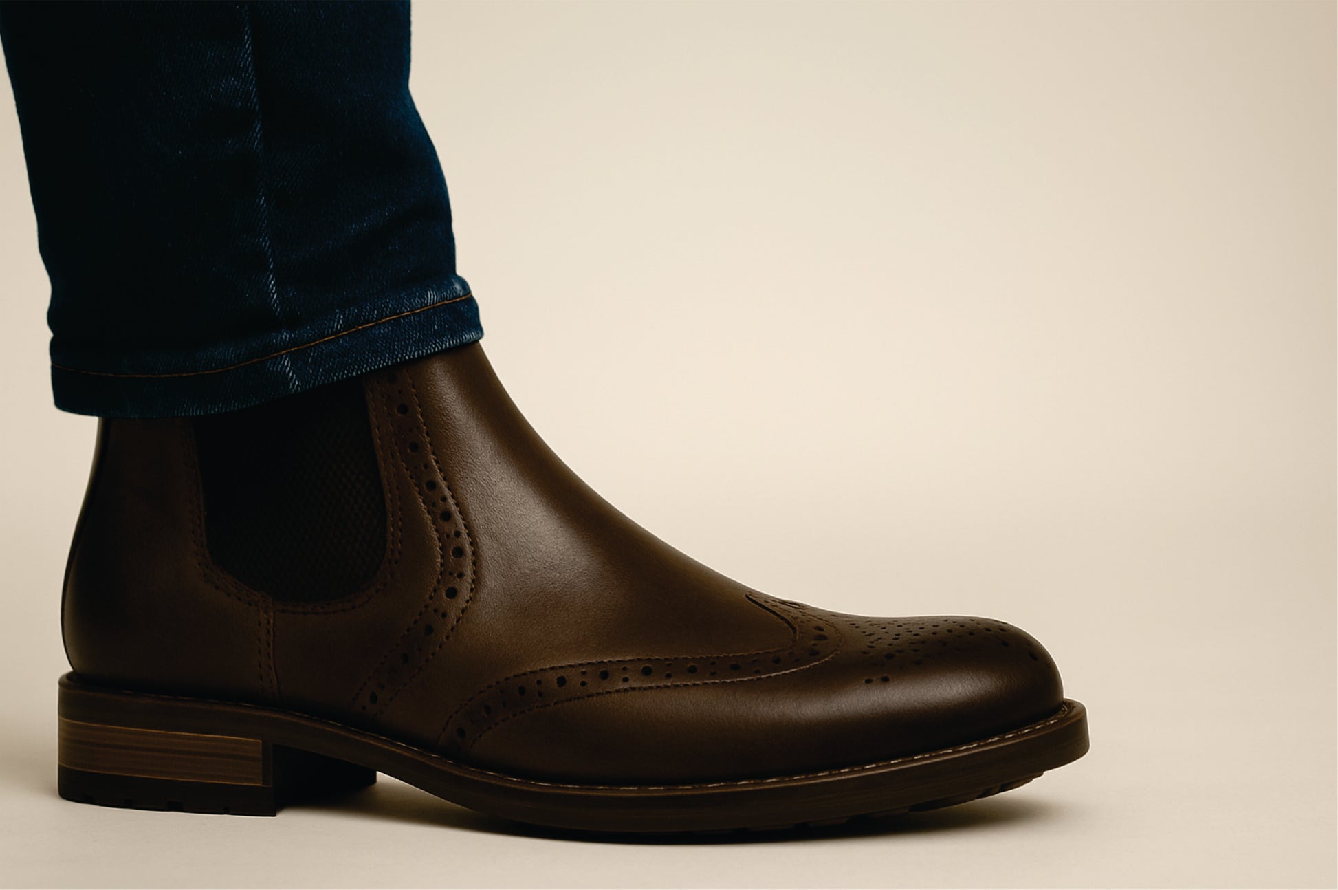 The brogue chelsea slip-on boot is made with premium quality waxy leather. The welted thermoplastic rubber (TPR) sole with topography gives excellent durability, attractive styling & higher strength. The boot comes with synthetic inner lining & extra padded pu moulded socks with memory foam providing long lasting comfort. It is best worn with jeans, cargos, chinos & bell bottoms.