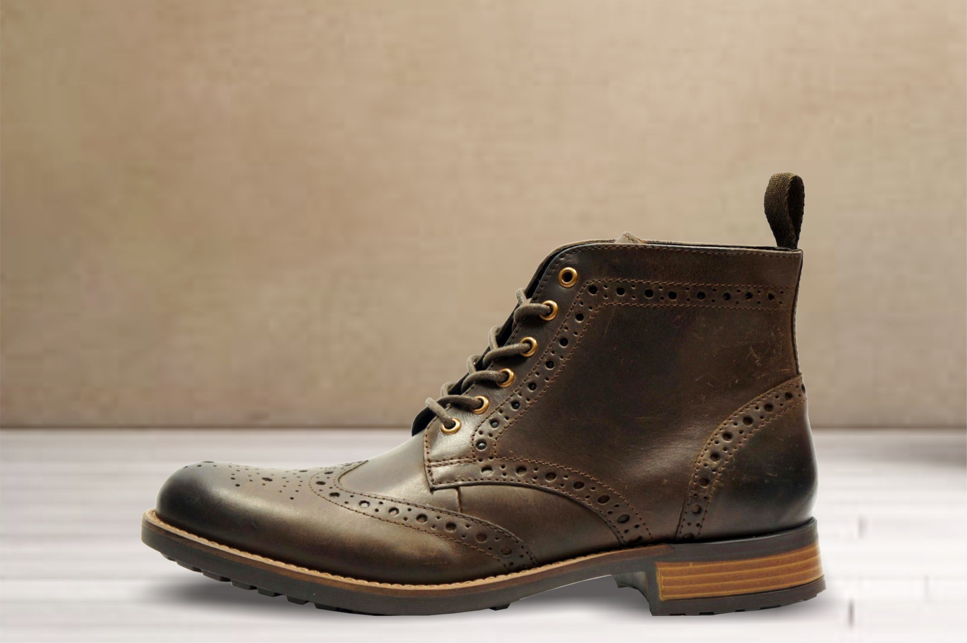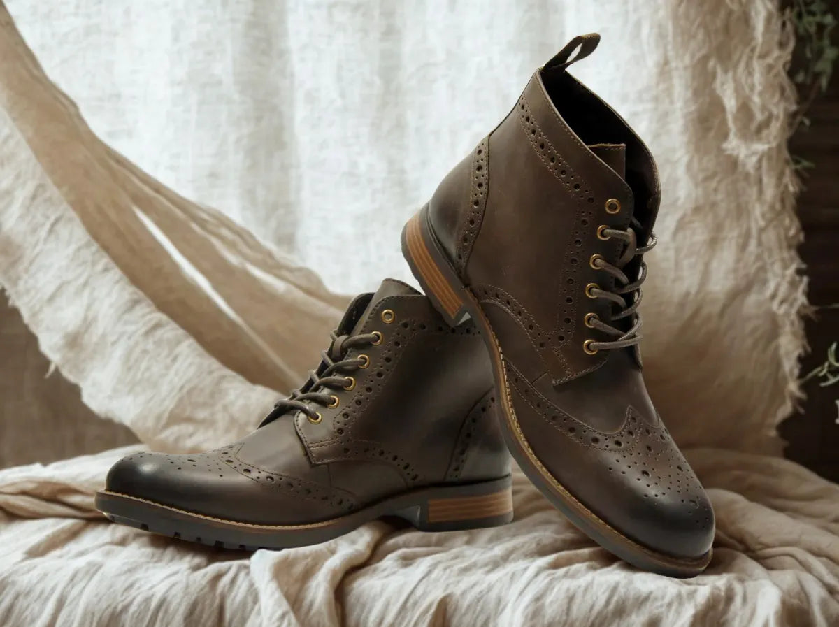 The brogue lace-up boot is made with premium quality waxy leather. The welted thermoplastic rubber (TPR) sole with topography gives excellent durability, attractive styling & higher strength. The boot comes with synthetic inner lining & extra padded pu moulded socks with memory foam providing long lasting comfort. It is best worn with jeans, cargos, chinos & bell bottoms.