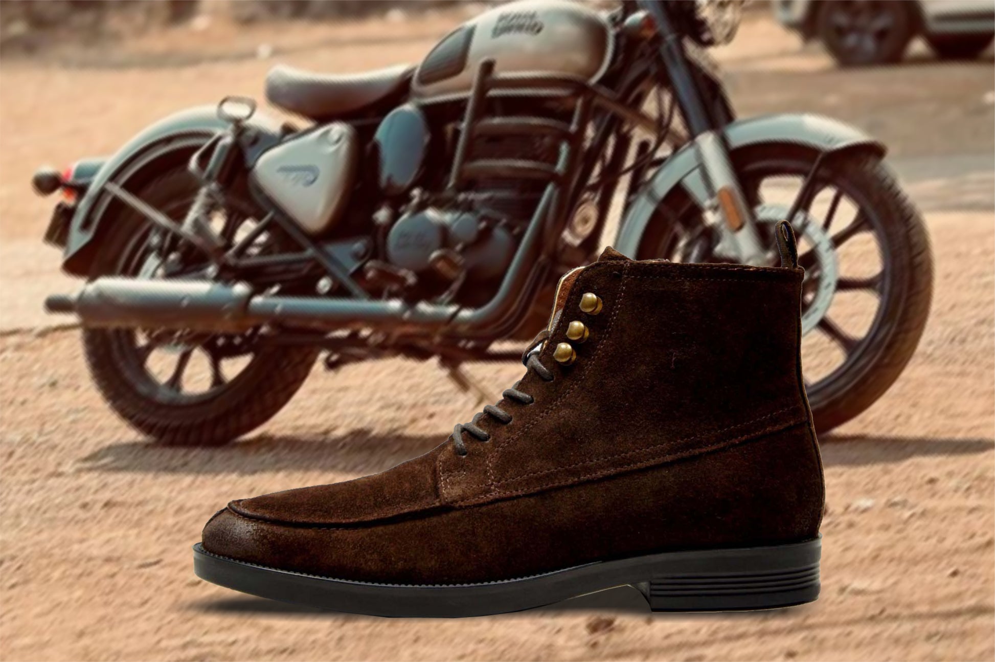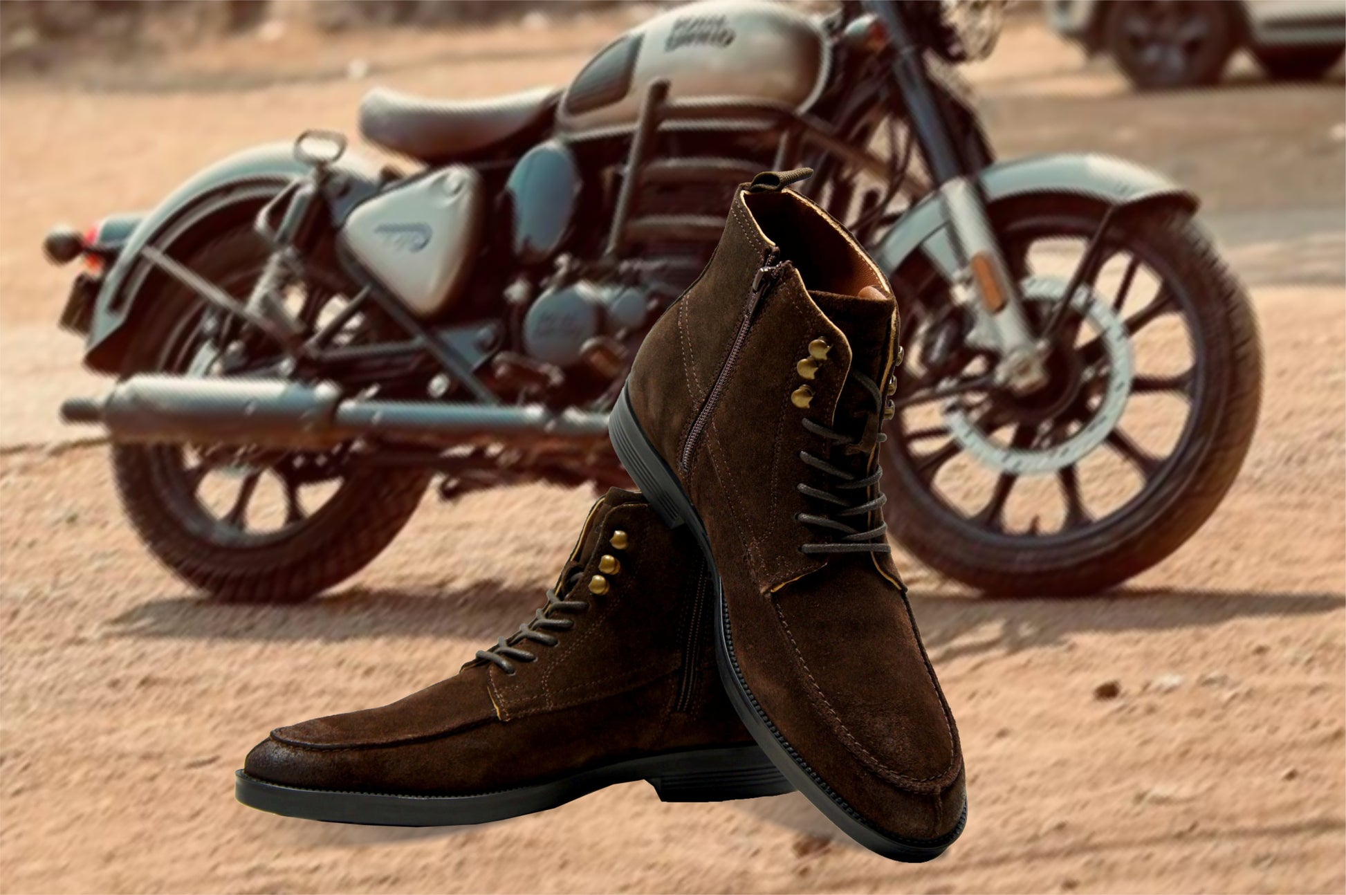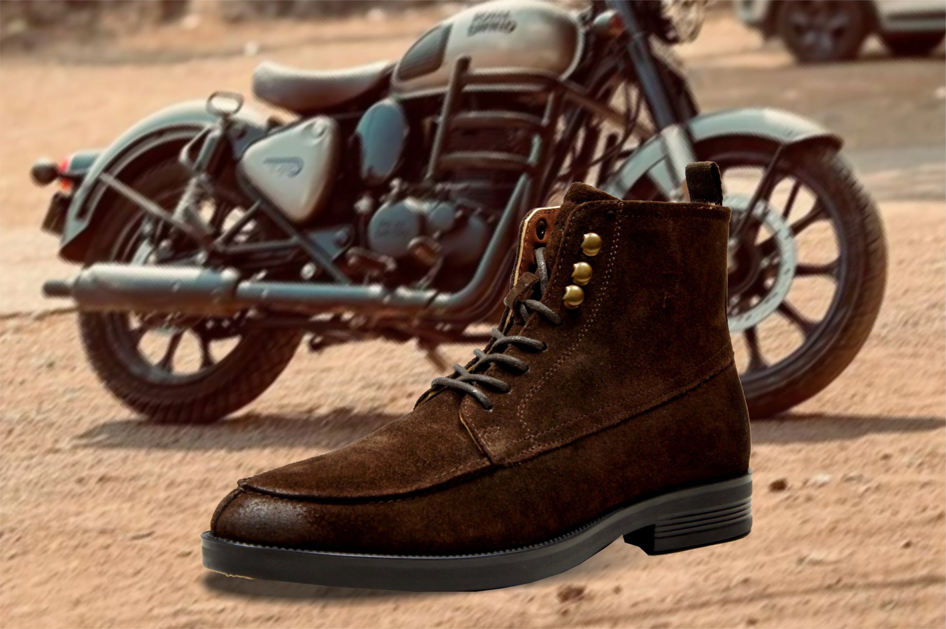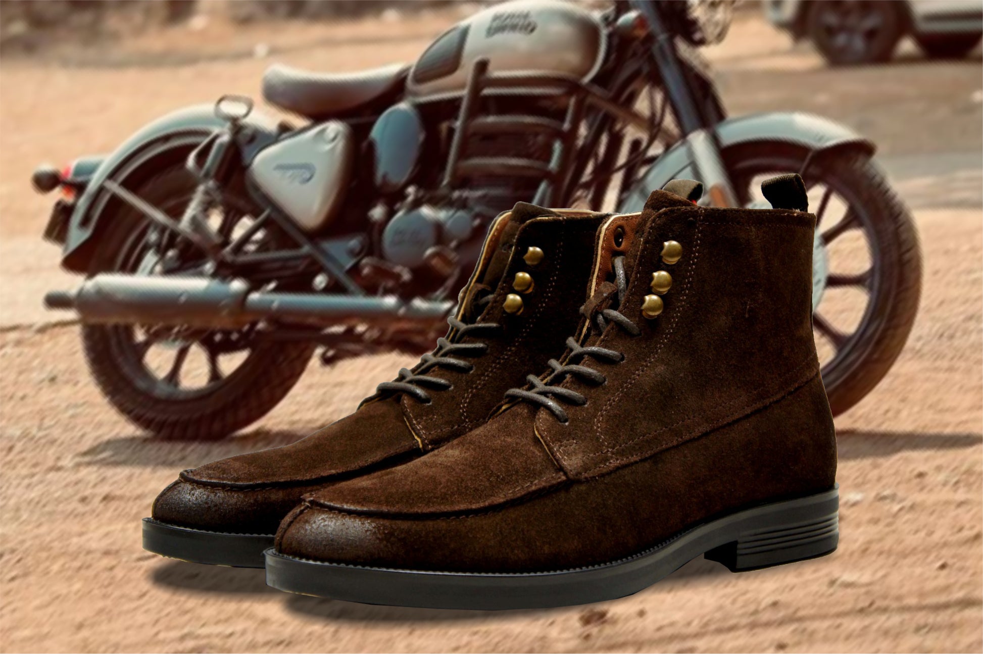 The biker lace-up boot is made with premium quality suede leather. The black coloured rubber moulded sole gives excellent durability & higher strength. The boot comes with synthetic inner lining & extra padded pu moulded socks with memory foam providing long lasting comfort. It is best worn with jeans, cargos, chinos & bell bottoms.