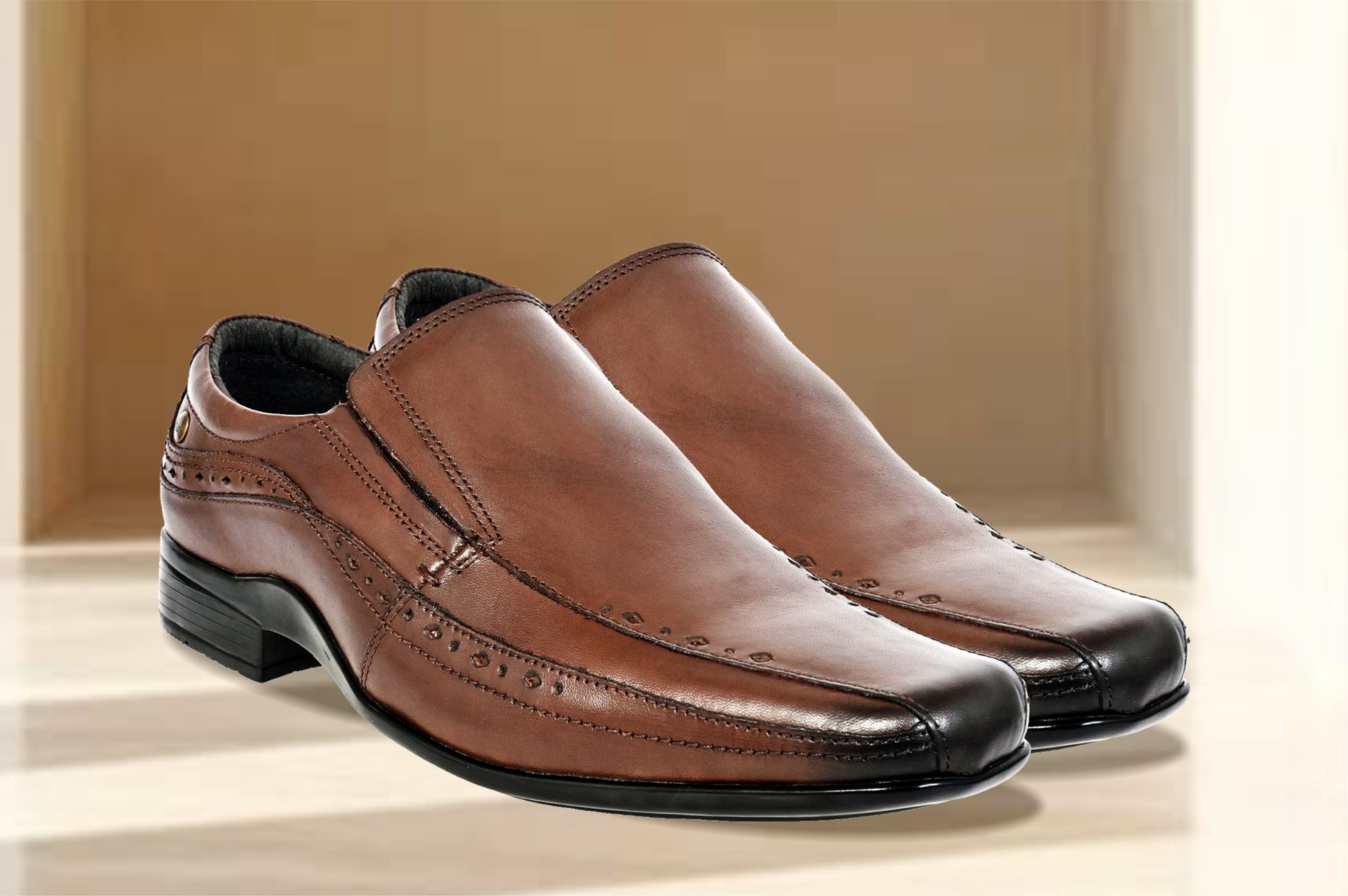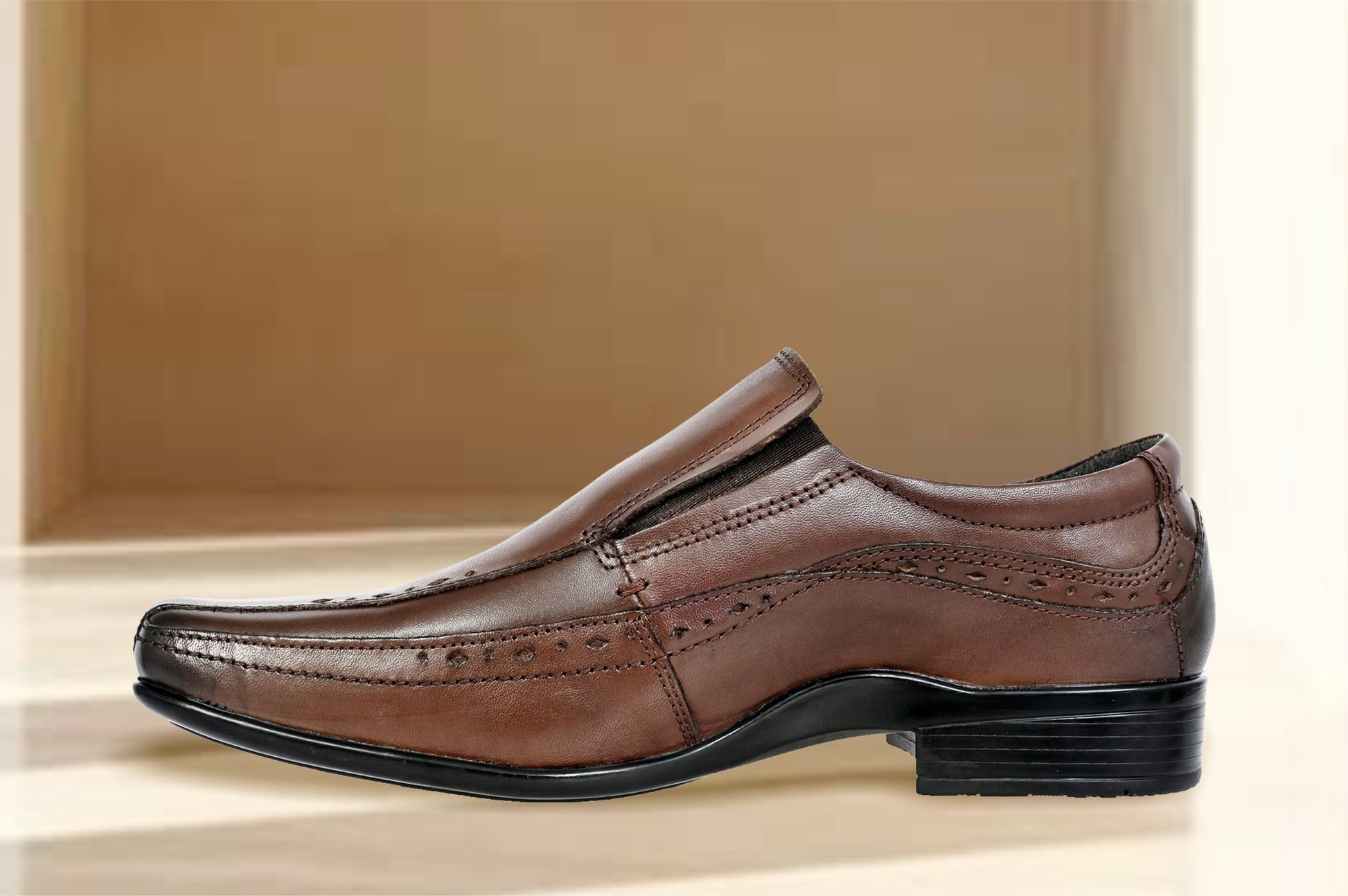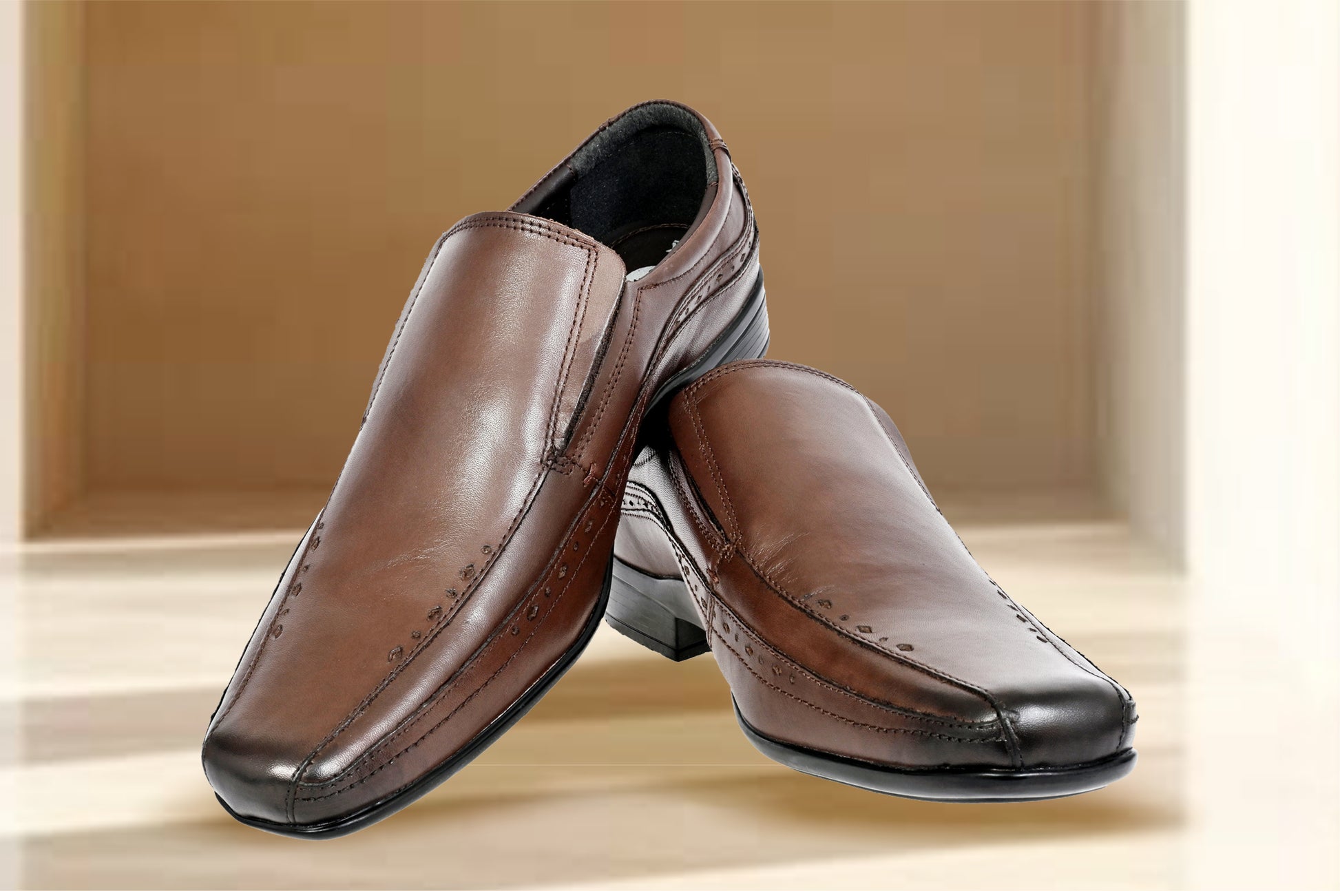 Brown Leather Slip-On Shoes For Men's Formal Pair
