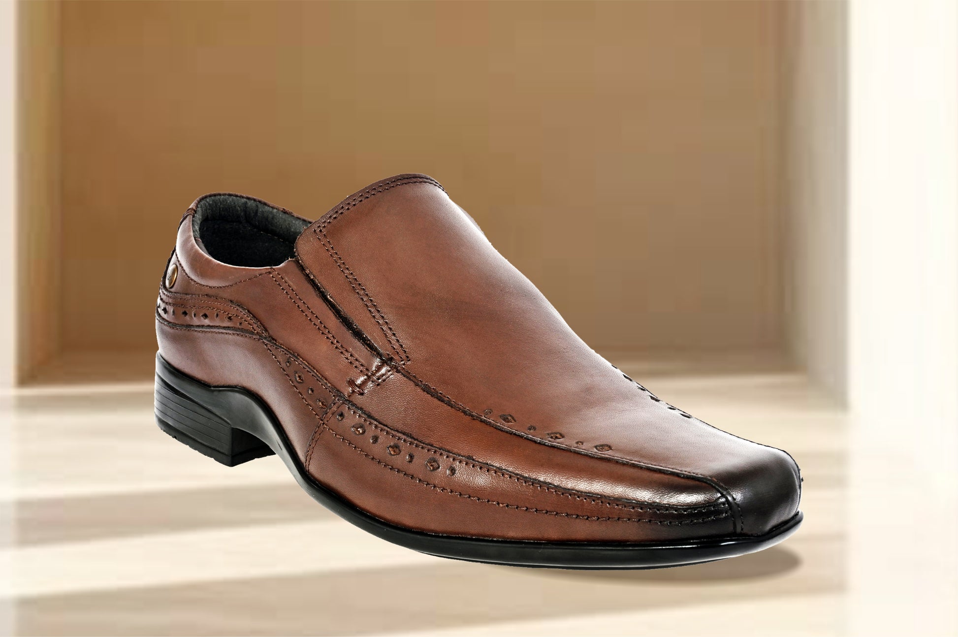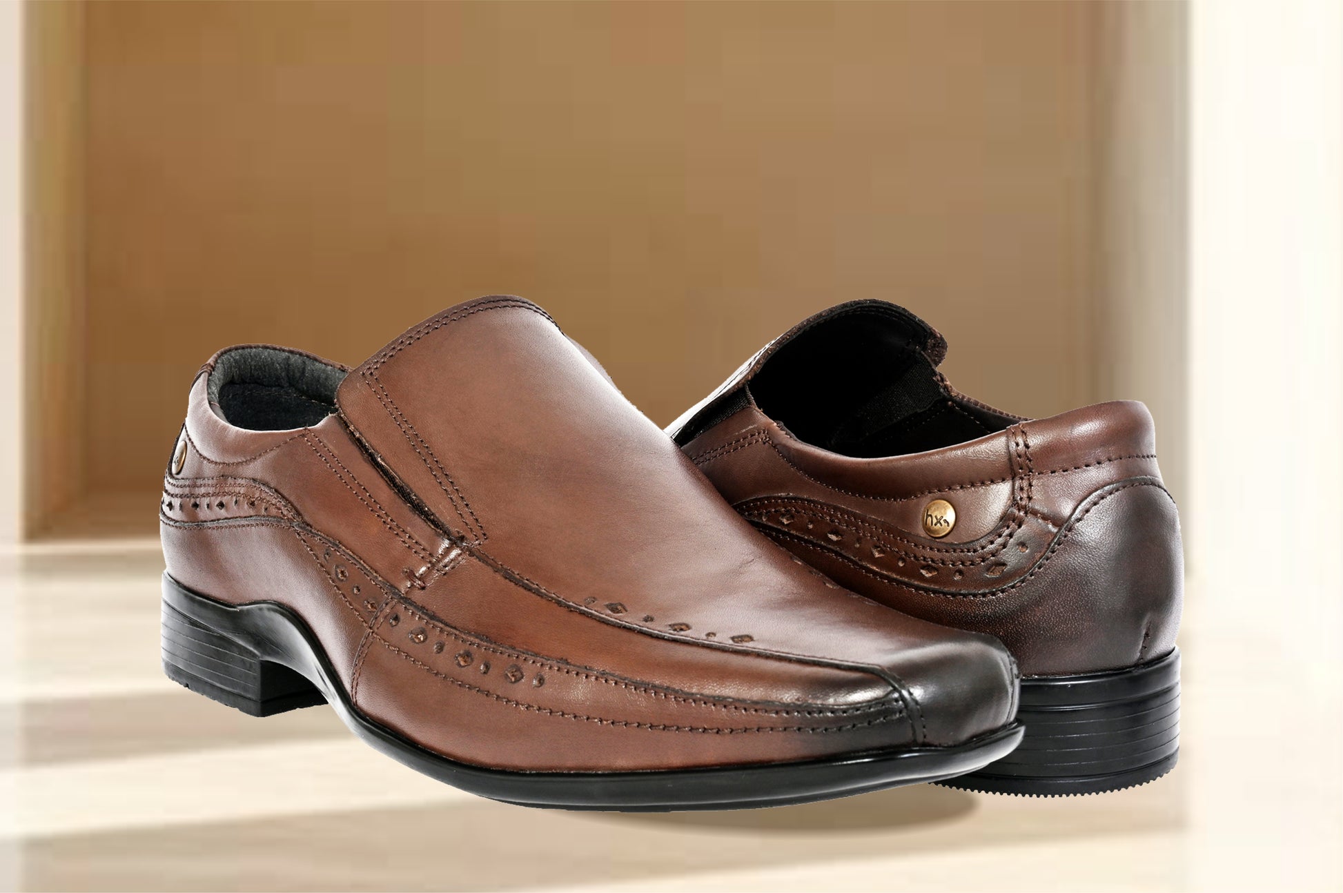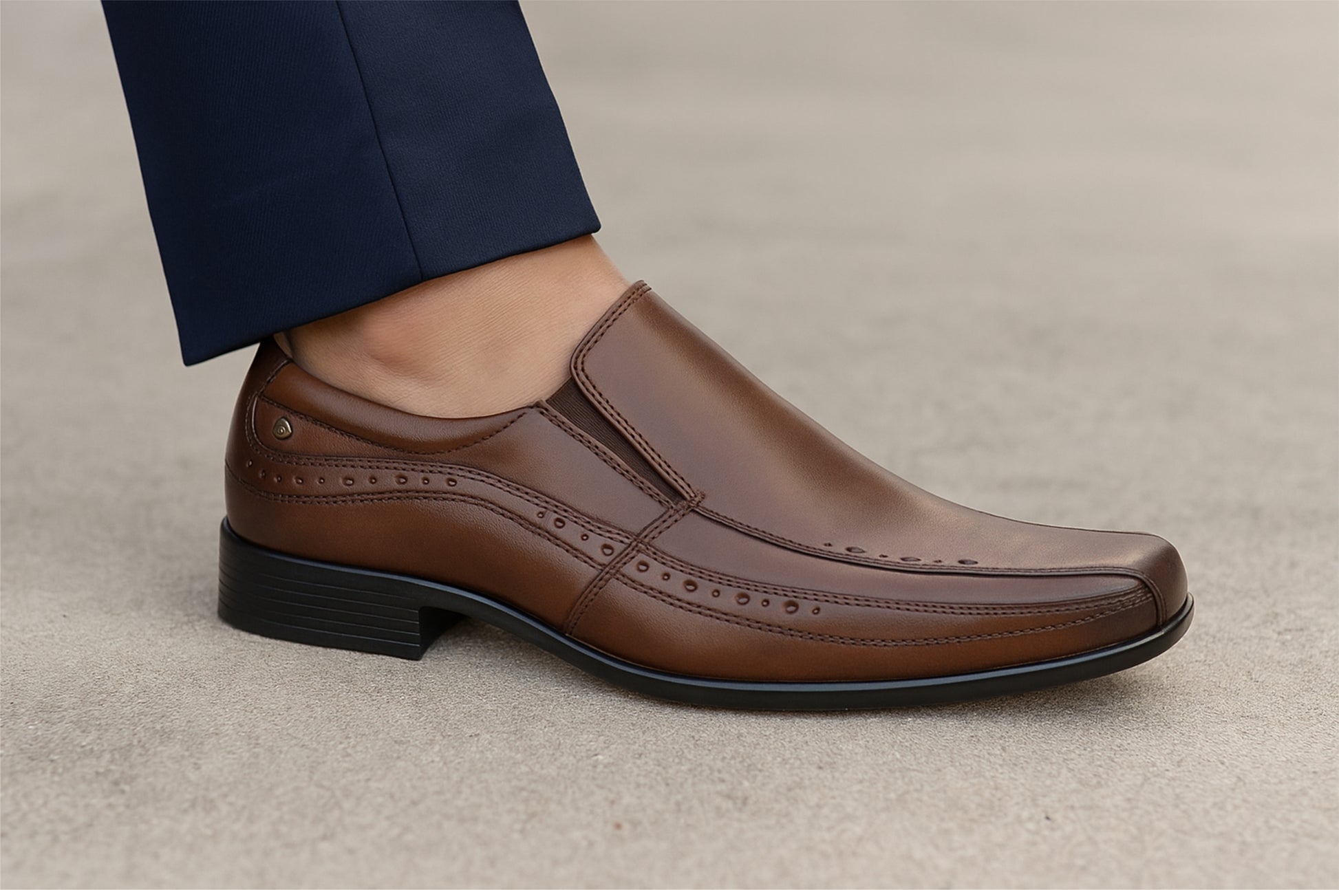 Brown Leather Slip-On Shoes For Men's Formal Pair