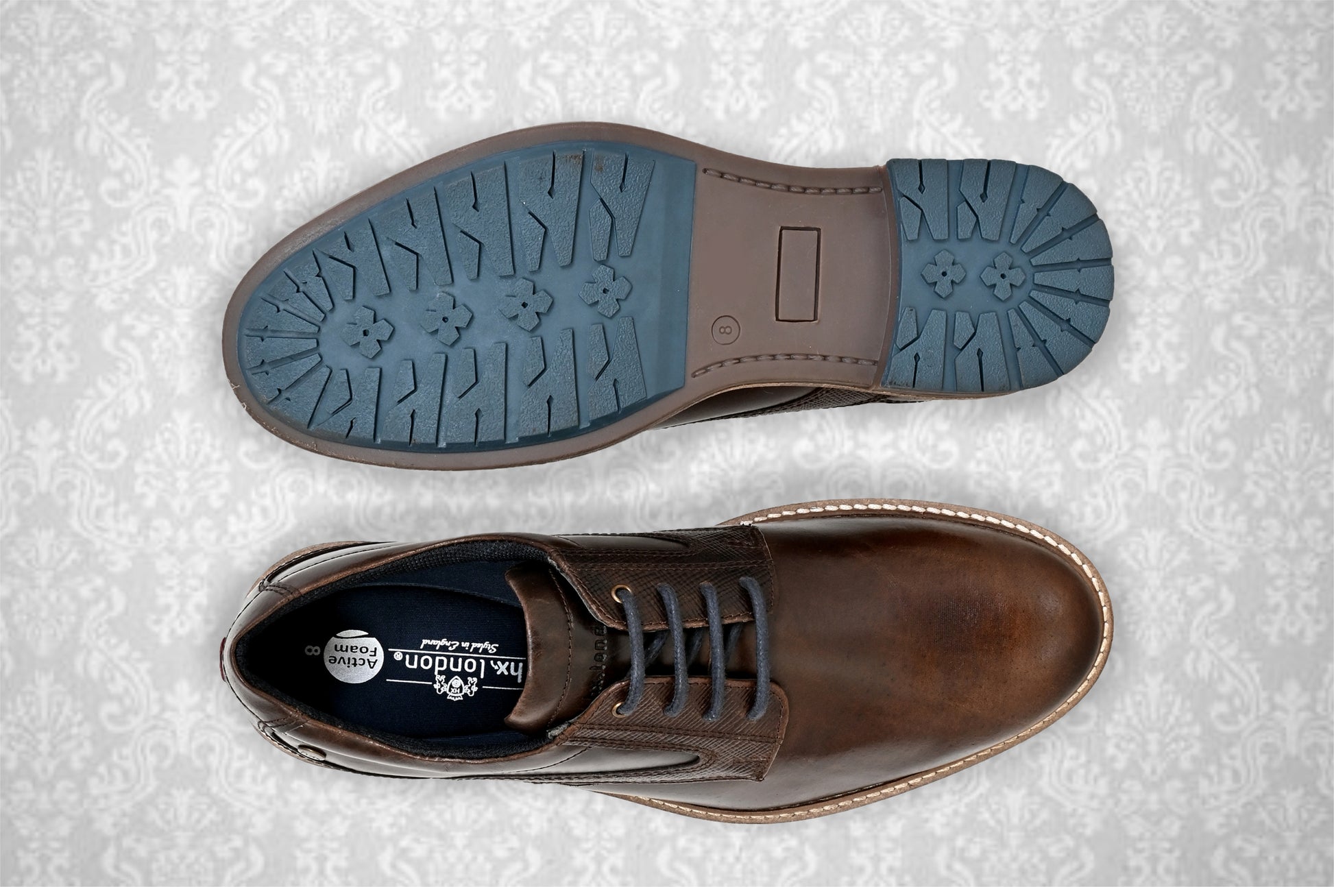 The shoe is made with premium quality genuine leather. The classic formal wear derby is styled with textured leather quarter. The Thermo plastic Rubber (TPR) sole with natural shoe welt adds up to a unique style quotient. It is crafted with breathable cushioned lining assists in keeping the foot dry and healthy. The extra padded lycra socks with memory foam gives long lasting comfort. It is best worn with TROUSERS, PANTS, SUITS, TUXEDOS & JEANS.
