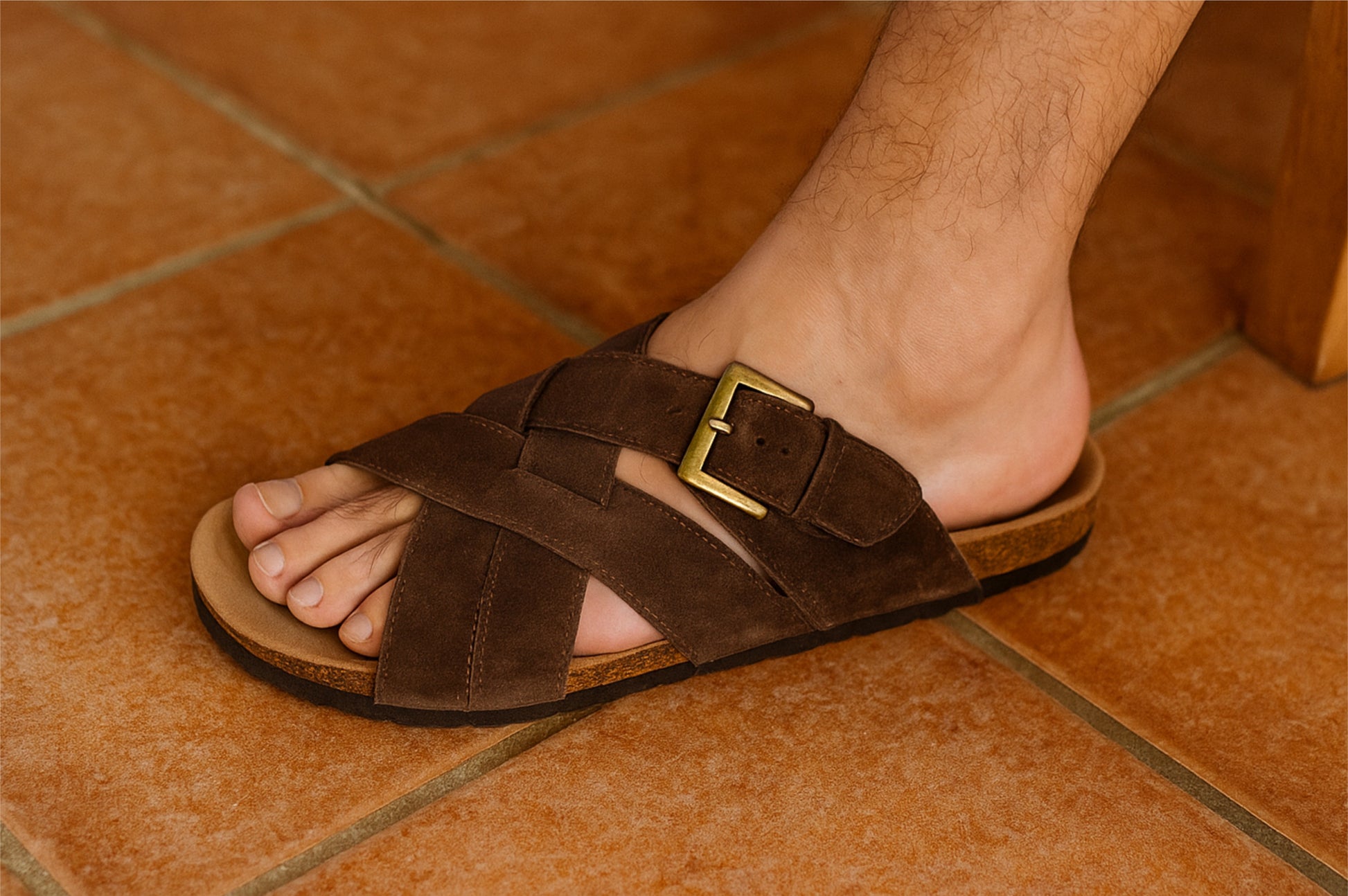 Brown Suede Slip-on Sandal Casual Flats for Men