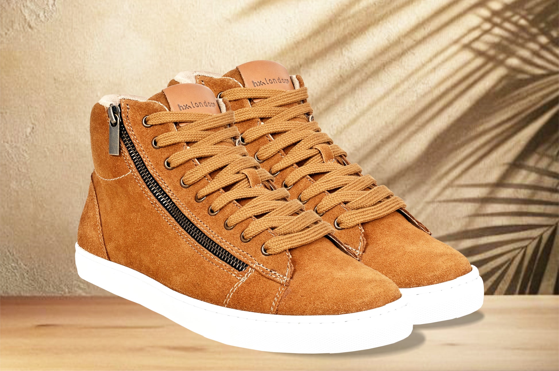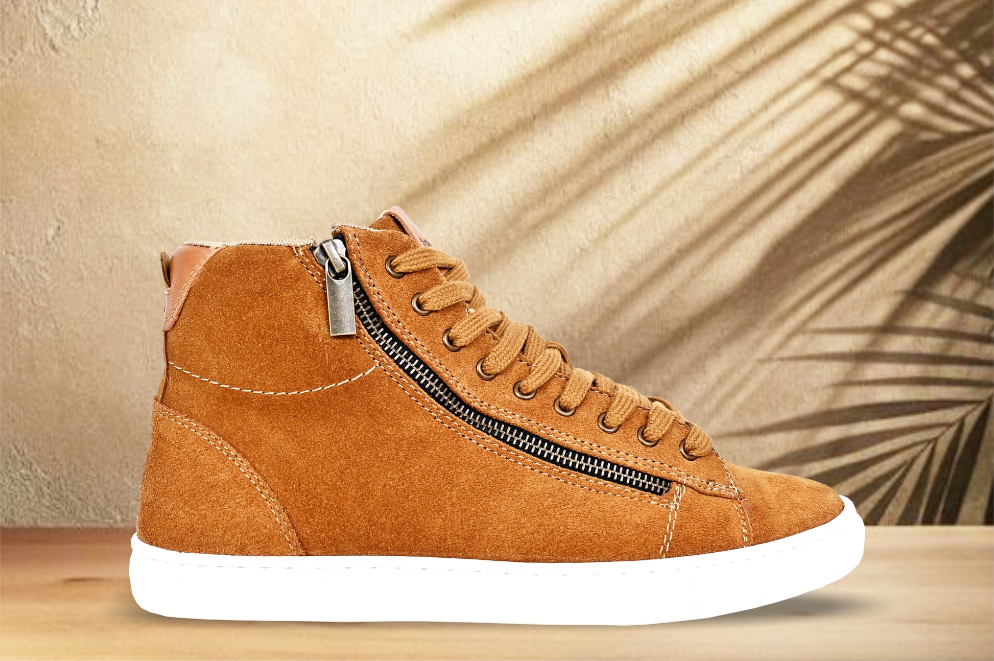 Camel Genuine Suede Leather Ankle Sneakers for Men