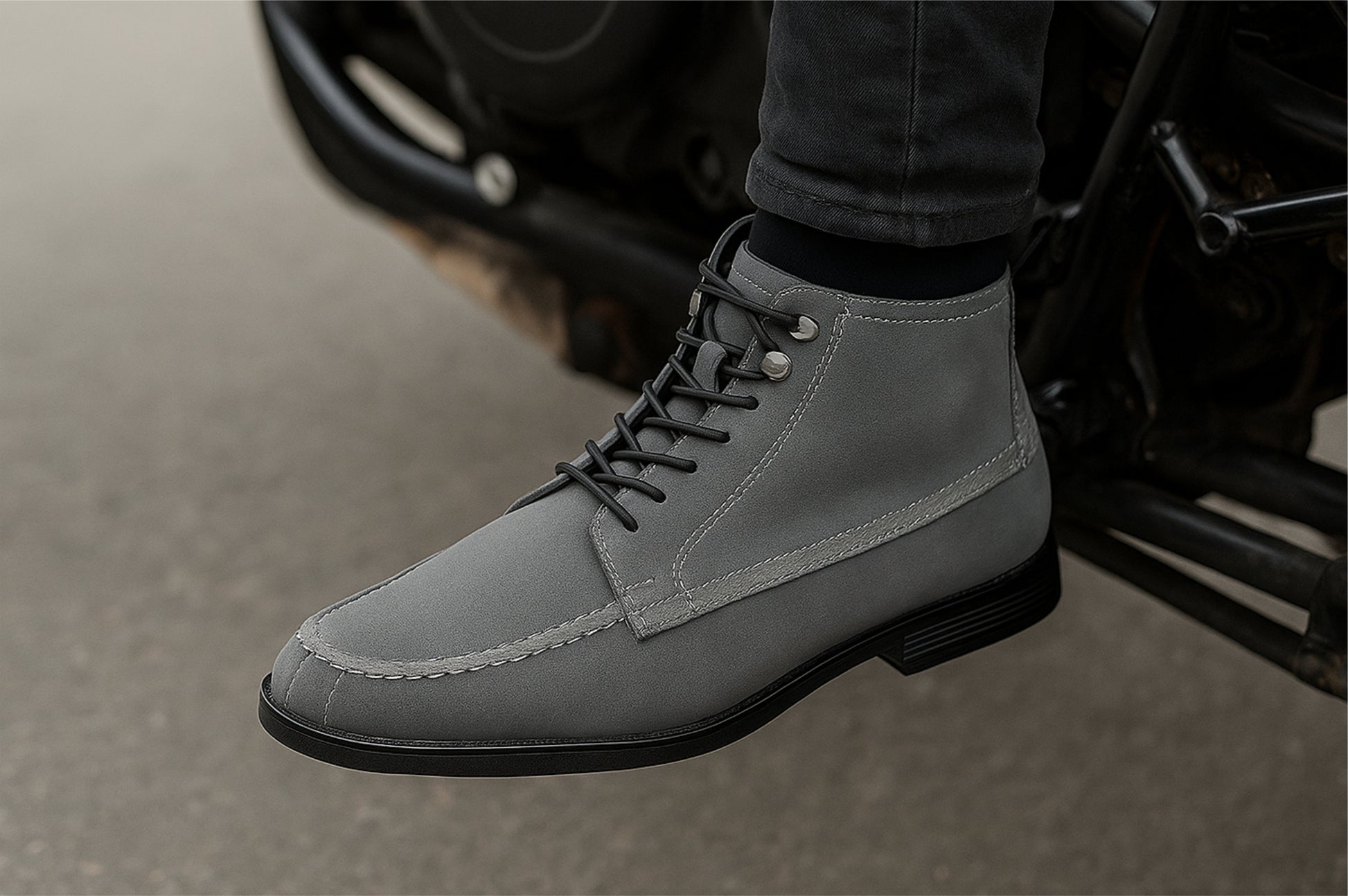 The biker lace-up boot is made with premium quality suede leather. The black coloured rubber moulded sole gives excellent durability & higher strength. The boot comes with synthetic inner lining & extra padded pu moulded socks with memory foam providing long lasting comfort. It is best worn with jeans, cargos, chinos & bell bottoms.