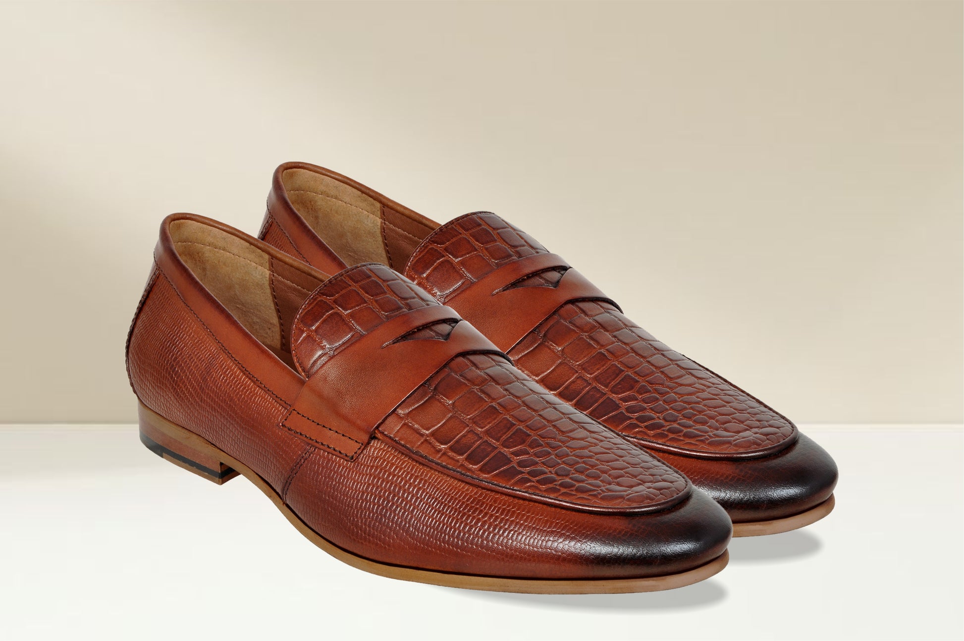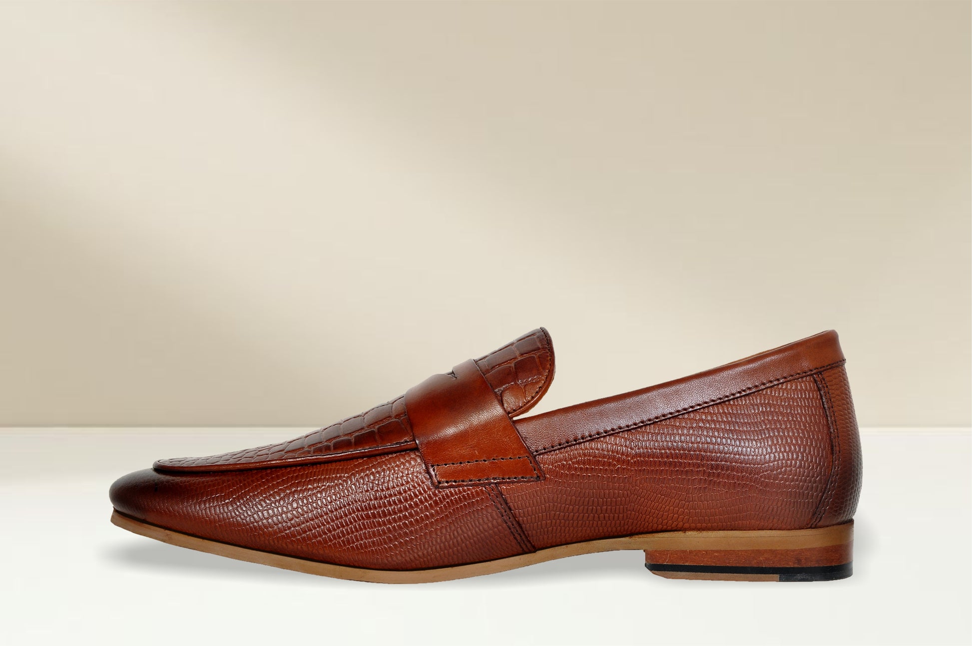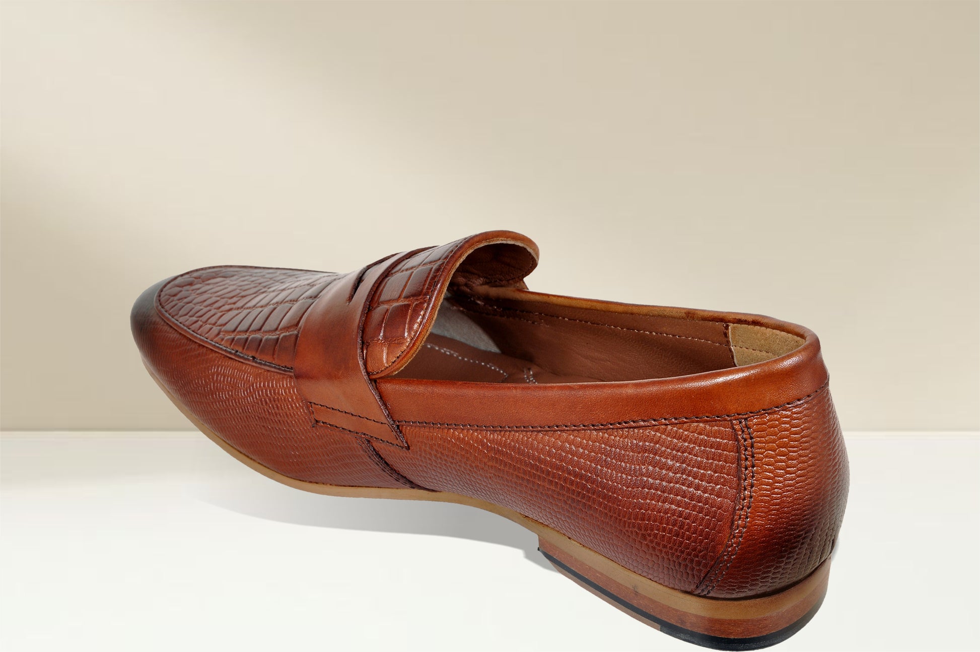 This all occasion moccasin is made of genuine croco print leather. The shoe is crafted with handmade resin sole that adds up to a unique style quotient. It is designed with leather inner lining with premium finish. The extra padded pu moulded socks with memory foam gives long lasting comfort & keeps the foot dry and sweat free. It is best styled with tuxedos, suits, trousers, jeans & chinos.