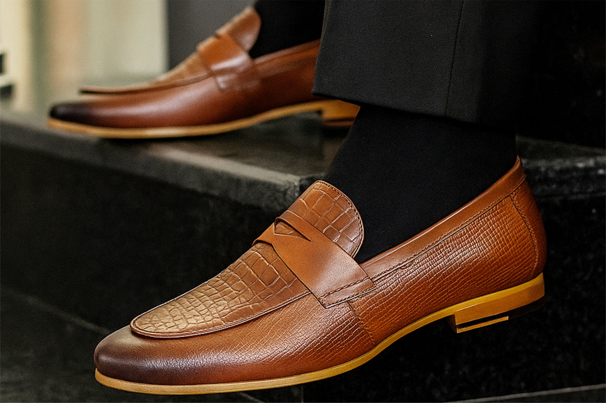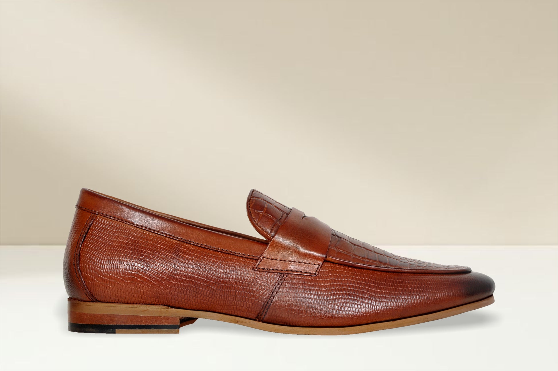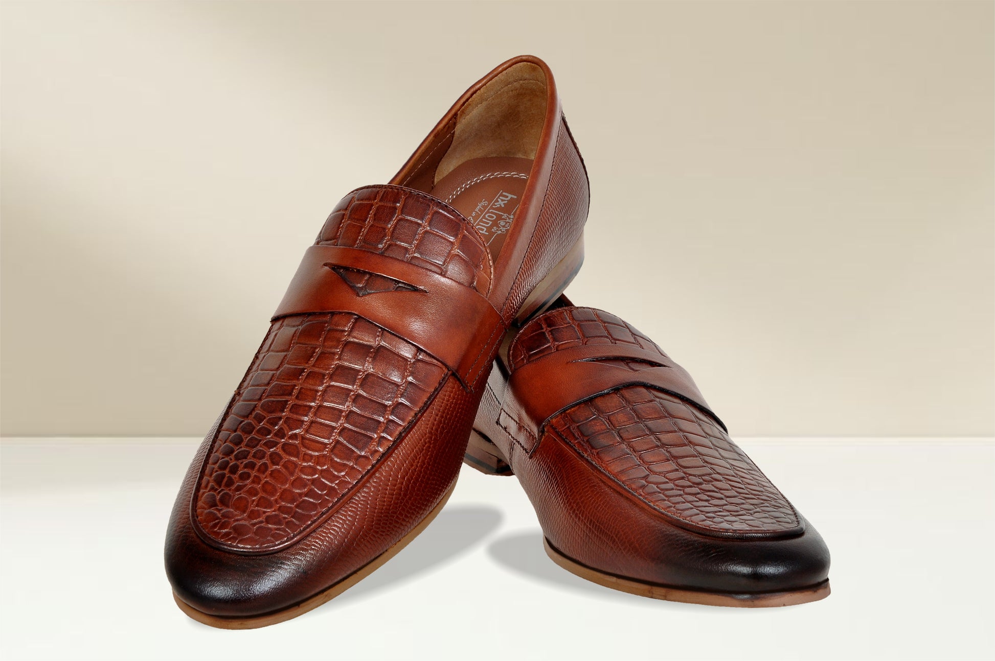 This all occasion moccasin is made of genuine croco print leather. The shoe is crafted with handmade resin sole that adds up to a unique style quotient. It is designed with leather inner lining with premium finish. The extra padded pu moulded socks with memory foam gives long lasting comfort & keeps the foot dry and sweat free. It is best styled with tuxedos, suits, trousers, jeans & chinos.